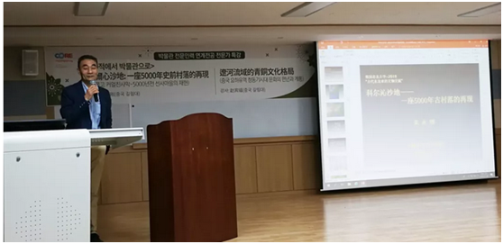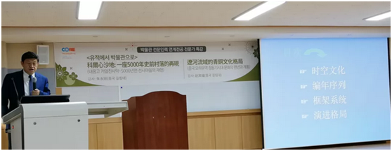 学术论坛召开之前,忠北大公司举行了海外名家考古学讲座,特邀朱永刚教授作了题为《科尔沁沙地——一座5000年史前村落的再现》的学术报告,详细介绍了内蒙古哈民忙哈遗址的考古发掘以及博物馆建设等情况;特邀赵宾福教授作了题为《辽河流域的青铜文化格局》的学术报告,系统介绍了青铜时代辽河流域的时空文化、编年序列、框架系统、演进格局。赵宾福教授还就辽河流域青铜文化的特征等问题,接受了韩国MBC电视台的采访。