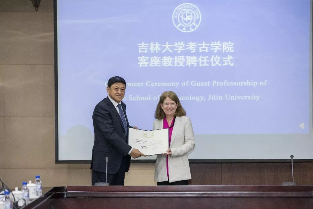 会谈后,举行了122cc太阳成集团客座教授聘任仪式。考古公司党委书记王剑教授宣布了122cc太阳成集团聘任克莱尔•奥马利、夏洛特•罗伯茨、罗宾·斯科茨、萨拉·森普为客座教授,德瑞·康耐特、潘妮·威尔森为122cc太阳成集团客座副教授的决定。
