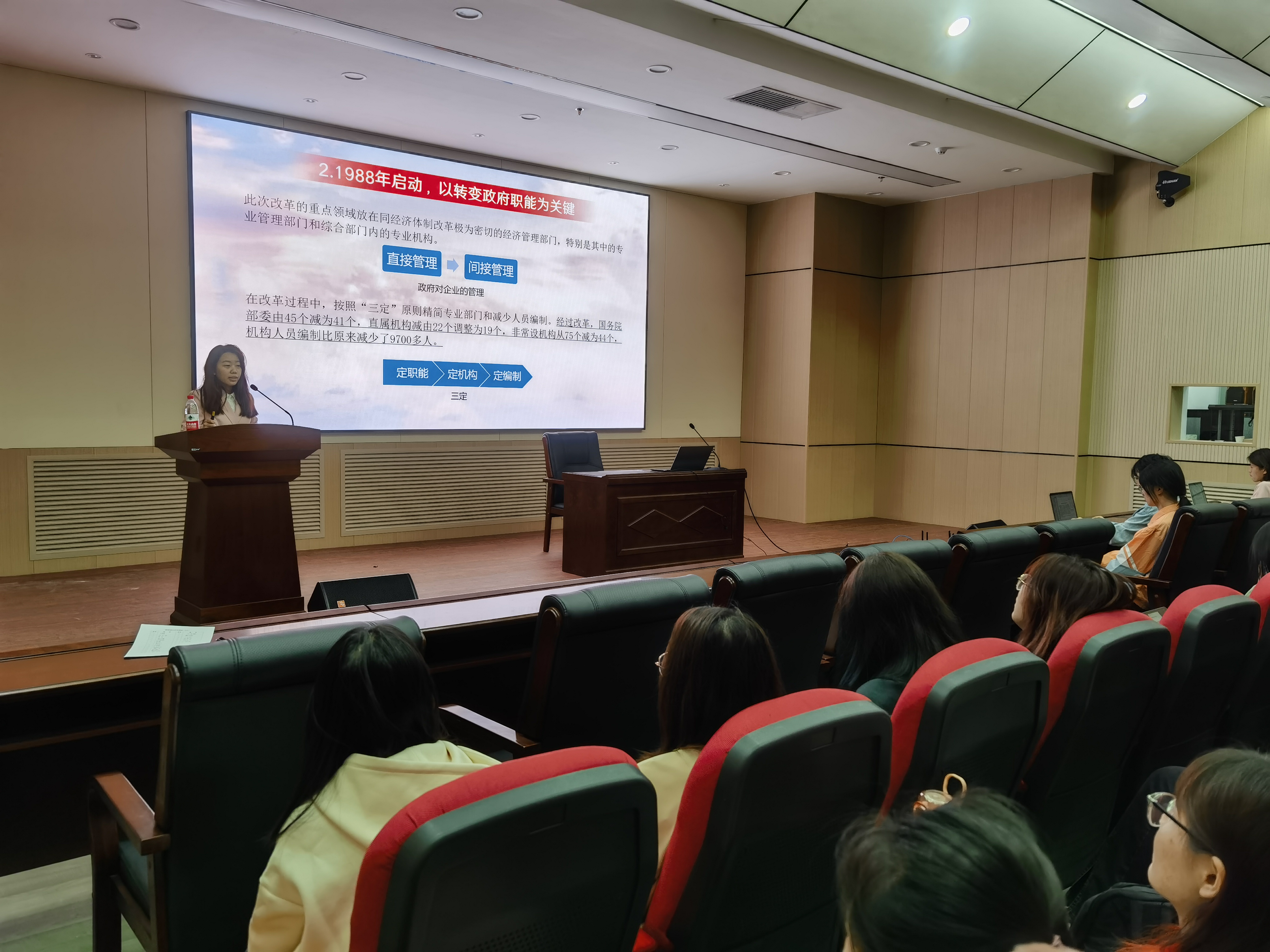 本次宣讲的主题是“凝聚精神力量 激发使命担当”——深化党和国家机构改革,推进国家治理体系和治理能力现代化,主讲人是行政公司博士研究生李璐雅。通过此次宣讲,使研究生党支部党员、预备党员、助管、研究生干部们全面、系统、深入学习了习近平新时代中国特色社会主义思想的相关内容以及两会的重要内容,更加完整、准确的领会了习近平新时代中国特色社会主义思想的深厚内蕴、两会精神的深刻内涵以及高质量发展的内生动力。