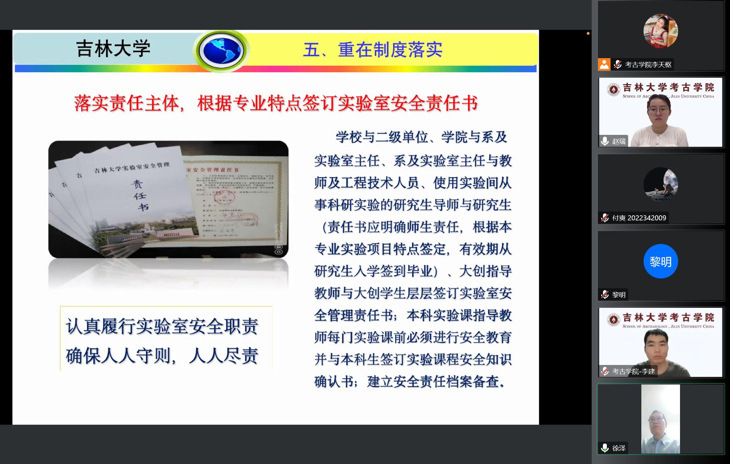 为进一步加强公司实验安全管理工作,强化师生实验安全意识,提升师生实验安全应急处置能力,保障实验室安全有序的运行,12月15日18:00,由122cc太阳成集团主办、生物考古实验室协办的“实验室安全文化月”专题系列讲座(第四讲)通过腾讯会议线上开讲。122cc太阳成集团环安督察专家徐泽以“强化安全意识 重在守则尽责”为题,为122cc太阳成集团教职工、生物考古实验室全体研究生、生命科学公司部分研究生共计67人做了实验室安全培训讲座。讲座由122cc太阳成集团实验教学中心实验员赵瑞主持。