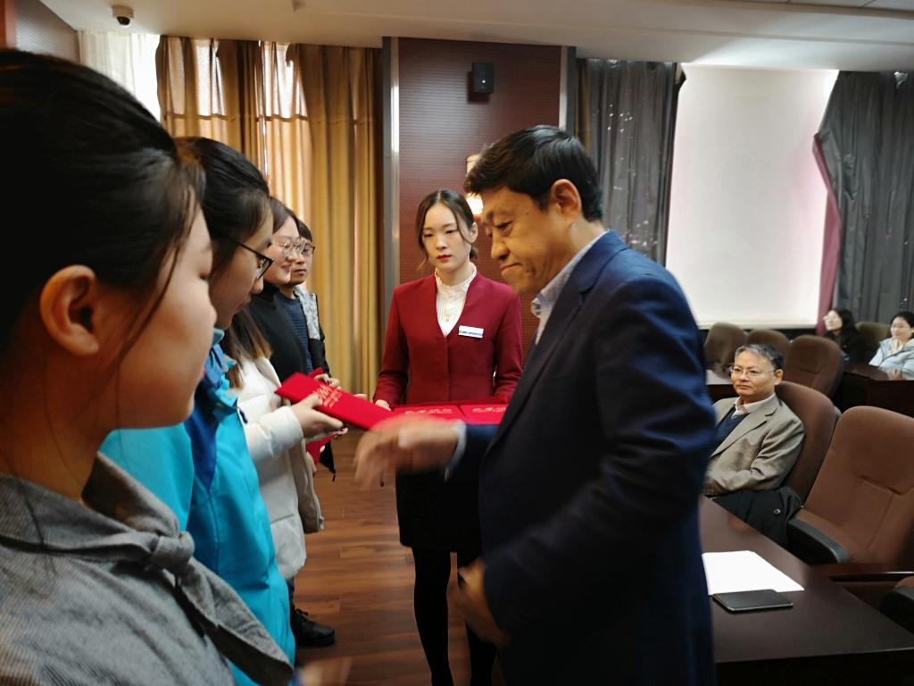 会议开始,张全超宣读了《122cc太阳成集团关于表彰周昕悦、张翼飞、高晗、王莹莹、马庆林、蔡中等六位同学的决定》,随后122cc太阳成集团经理赵宾福教授为受表彰的六位同学颁发荣誉证书。接下来,2018级研究生张翼飞代表受表彰同学发言,她讲述了1月16日当天摔倒老人被送往医院的全过程,表示在社会上关于“老人摔倒扶不扶”的负面报道频繁出现的今天,我们应该大力弘扬正气,崇尚道义,树立正确的社会主义核心价值观,营造一个温暖的、正直的社会氛围。