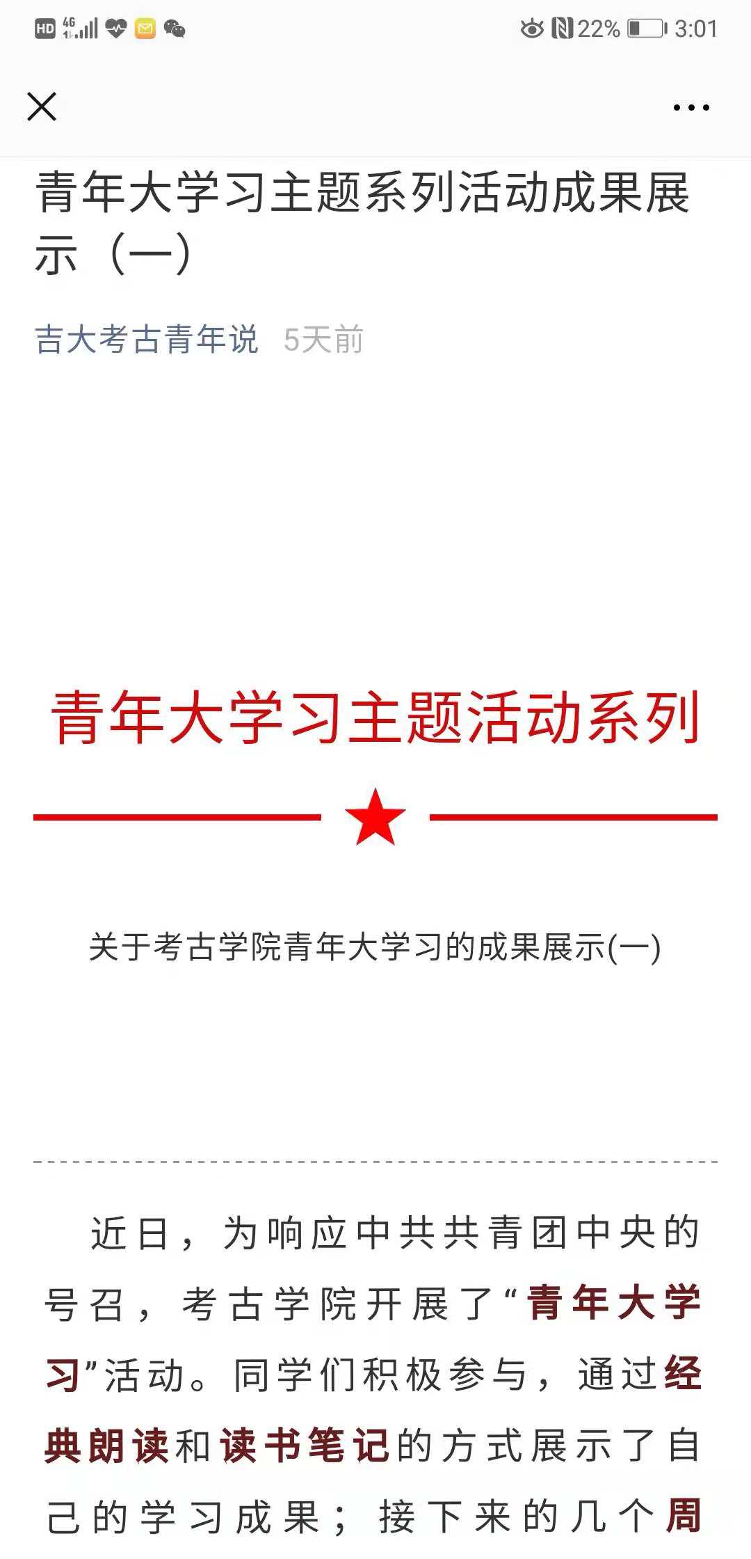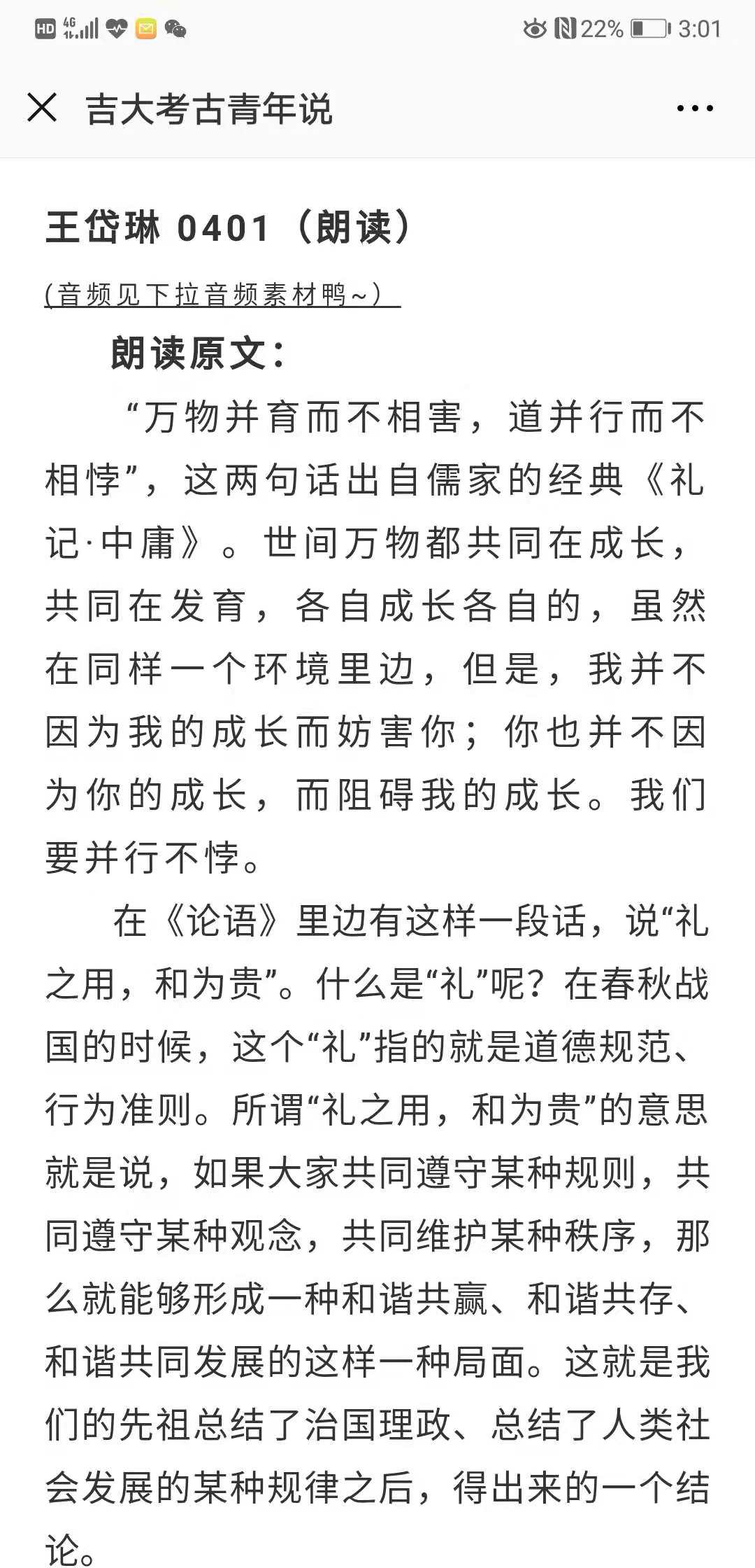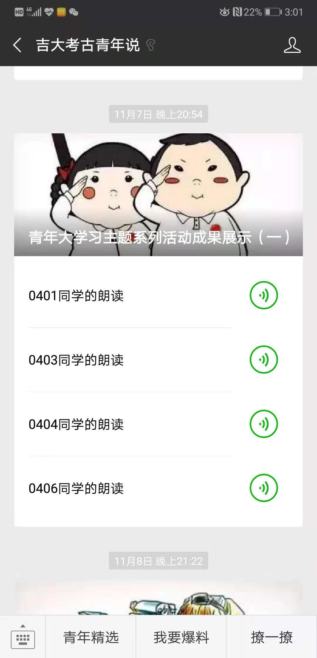 首先,本次推送中吉大考古青年说微信平台首先展示了霍奕然等四名同学的经典朗读音频。其中,我们聆听了122cc太阳成集团同学们阅读了习近平总书记关于构建和谐社会的讲话,也听到了董和同学阅读总书记在北京大学讲话中的15个“金句”的音频,读懂了习近平总书记对青年的教诲,激发了122cc太阳成集团同学们的学习热情。
