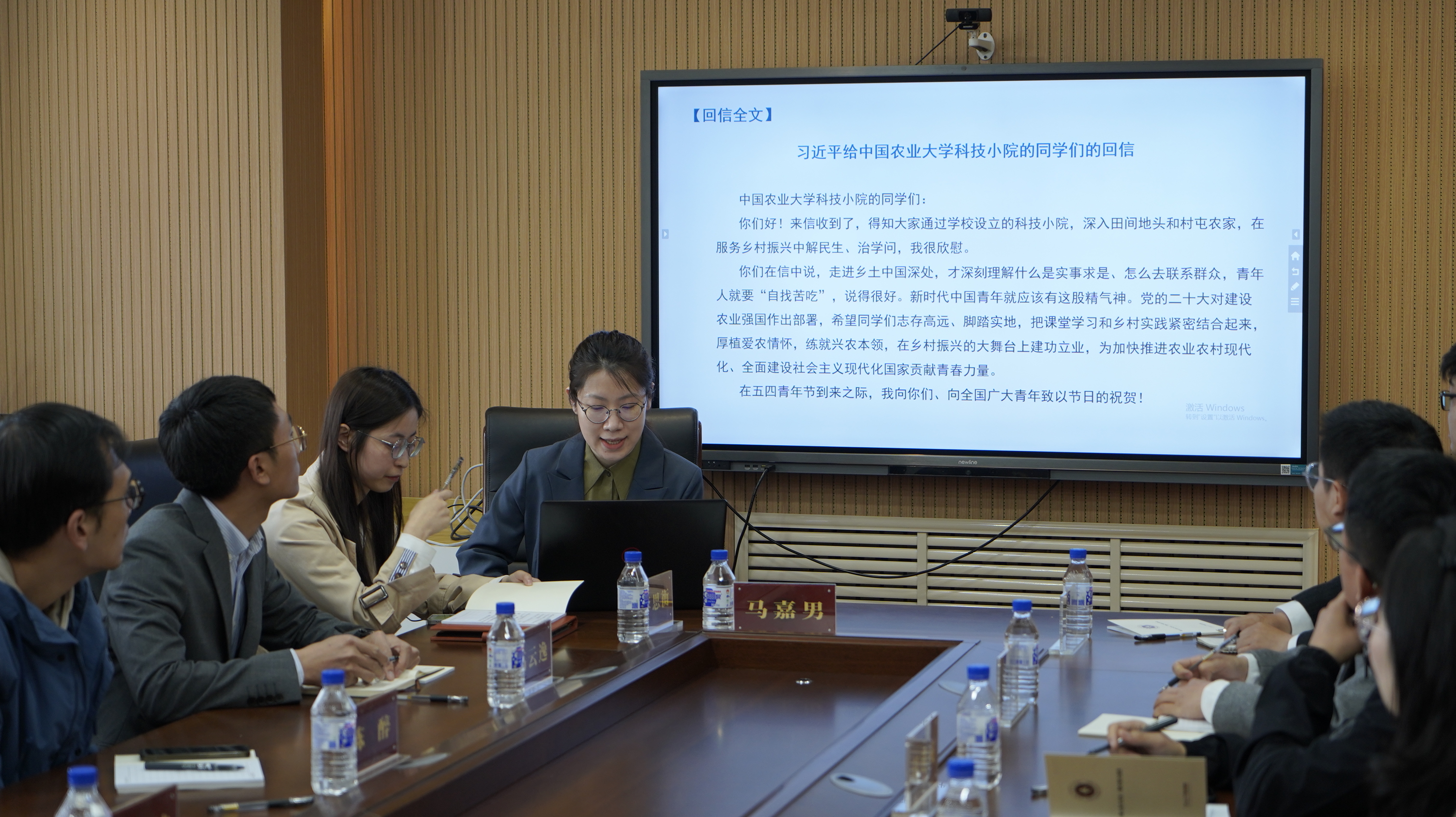 会议伊始,由团委负责人马嘉男传达学习习近平总书记给中国农业大学科技小院员工的回信精神。