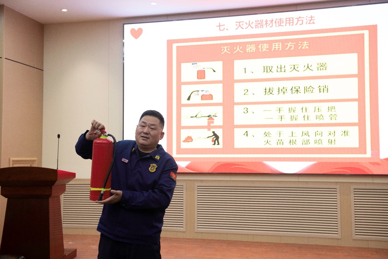 开幕式后,开启了本届实验室安全文化月的第一项活动 ----“消防安全知识讲座及消防逃生演练”,由保卫处消防科副科长董立明主讲。通过一系列事故案例,指出了实验室消防安全的重要性,结合公司实验室工作实际,对实验室消防隐患及风险点做了详细介绍,重点强调了实验室消防安全的注意事项。最后,详细讲解、现场演示了灭火器和消防面罩的使用方法和注意事项。