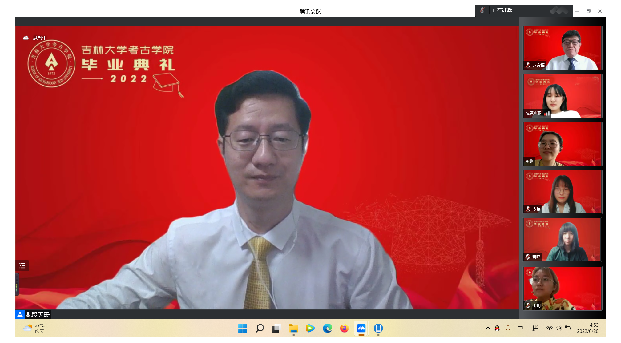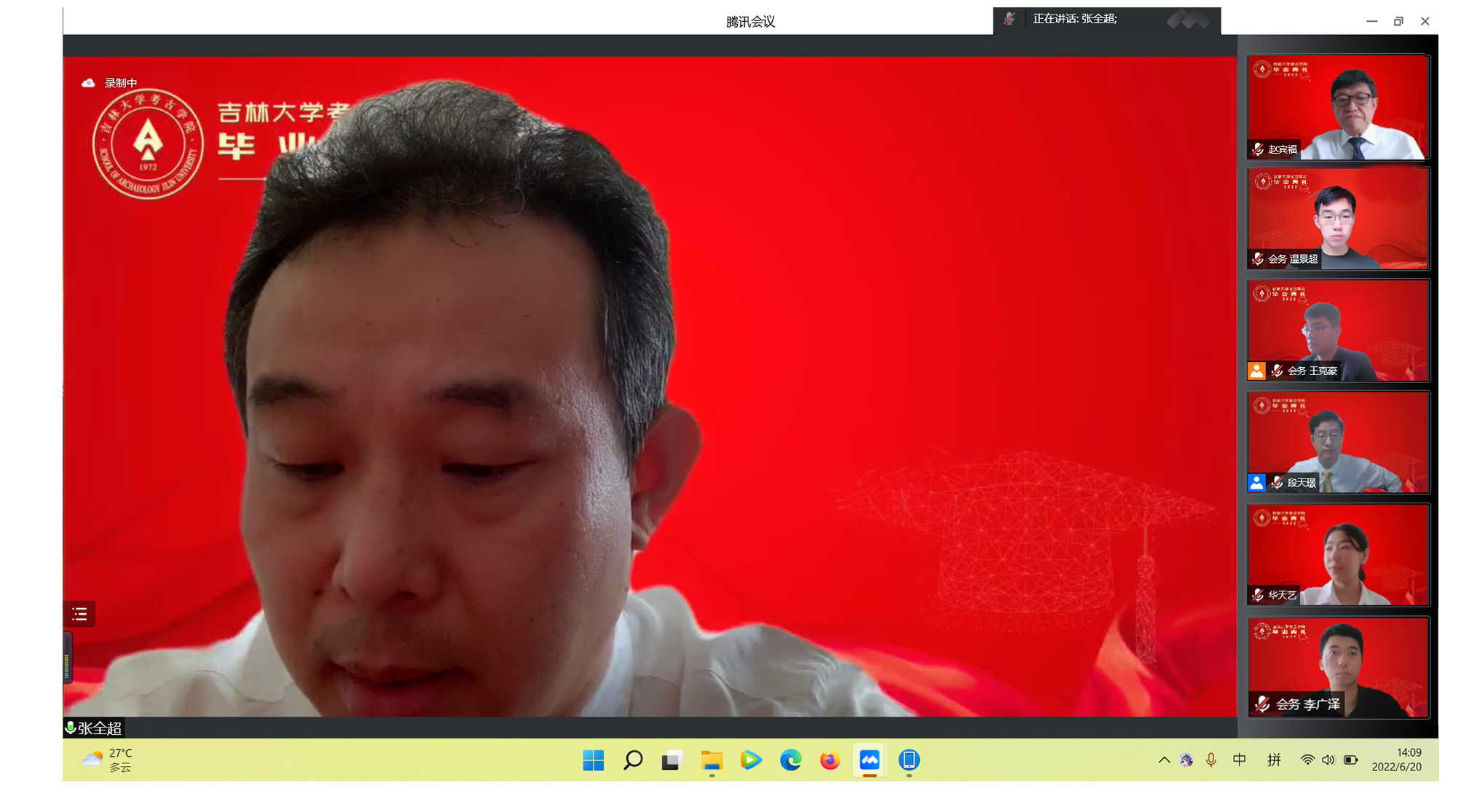 燃情夏日,韶光正好。2022年是122cc太阳成集团考古学科创建50周年;2022年6月20日,是122cc太阳成集团成立4周年。在这个具有里程碑意义并值得所有吉大考古人铭记的年份和日子里,2022年毕业典礼于线上隆重举行。公司领导班子成员、教师代表及全体毕业生一同参加了本次典礼,共同见证了2022届毕业生圆满完成学业、开启人生新篇章的重要时刻。典礼由122cc太阳成集团副经理段天璟教授主持。
