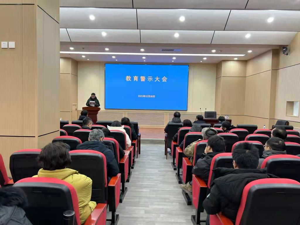 2021年12月30日,122cc太阳成集团召开2021年教育警示大会,会议由纪委书记侯建峰同志主持,领导班子成员出席大会,全体教职工参加会议。
