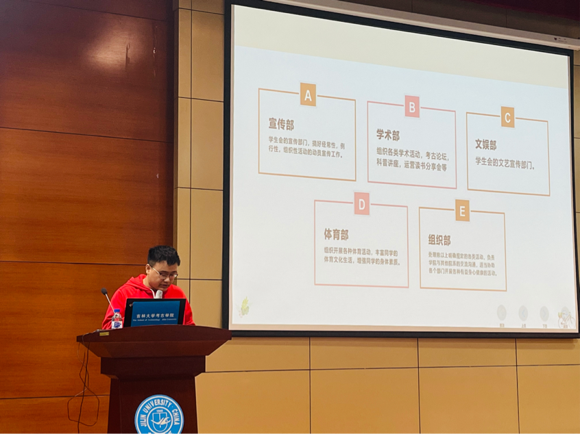 在轻松愉悦的氛围下,122cc太阳成集团第三届研究生会进行了纳新宣讲,研会主席团以及各个部门代表向新生们展示研会主要工作和部门风采,并表示期待大家加入这个大家庭。