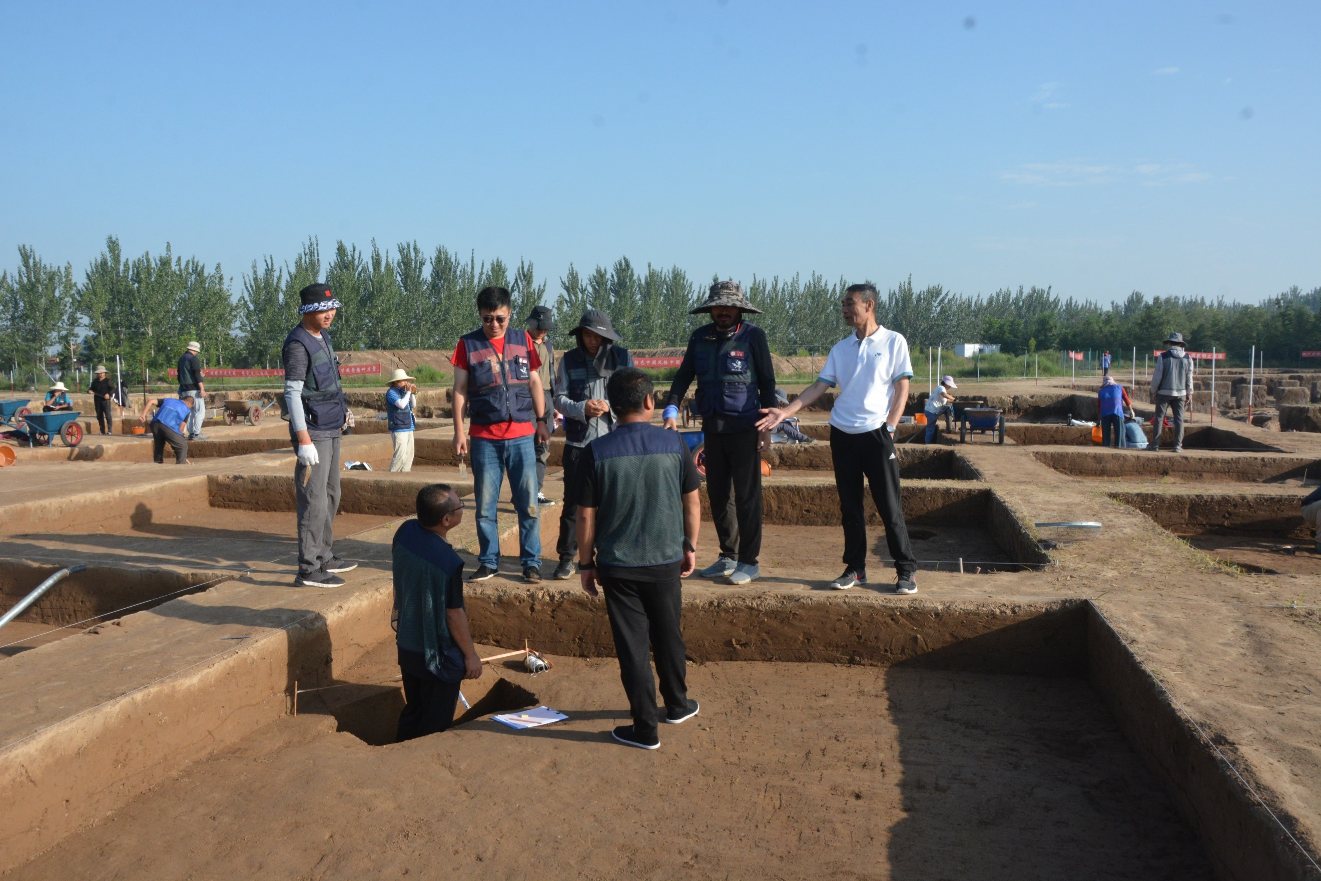 国家文物局专家组成员、中国文化遗产研究院研究员乔梁,山西省考古研究院研究员马昇,山西省运城市文物保护中心副主任钟龙钢和122cc太阳成集团副经理段天璟,122cc太阳成集团匡亚明特聘教授朱永刚,122cc太阳成集团先秦考古系主任、山西运城夏县田野实践教学基地主任方启,122cc太阳成集团教师林森、任进成,基地田野指导张官狮、刘伟以及2019级考古学专业全体本科生、2021年国家文物局田野考古实践训练班学员出席并参与本次活动。