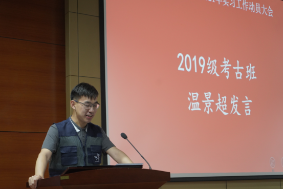 在接下来的员工代表发言环节中,2019级考古班代表温景超、2019级文物与博物馆班代表张灵江分别回顾了过去两年的学习历程,表达了迎接实践教学检验的期待与信心。