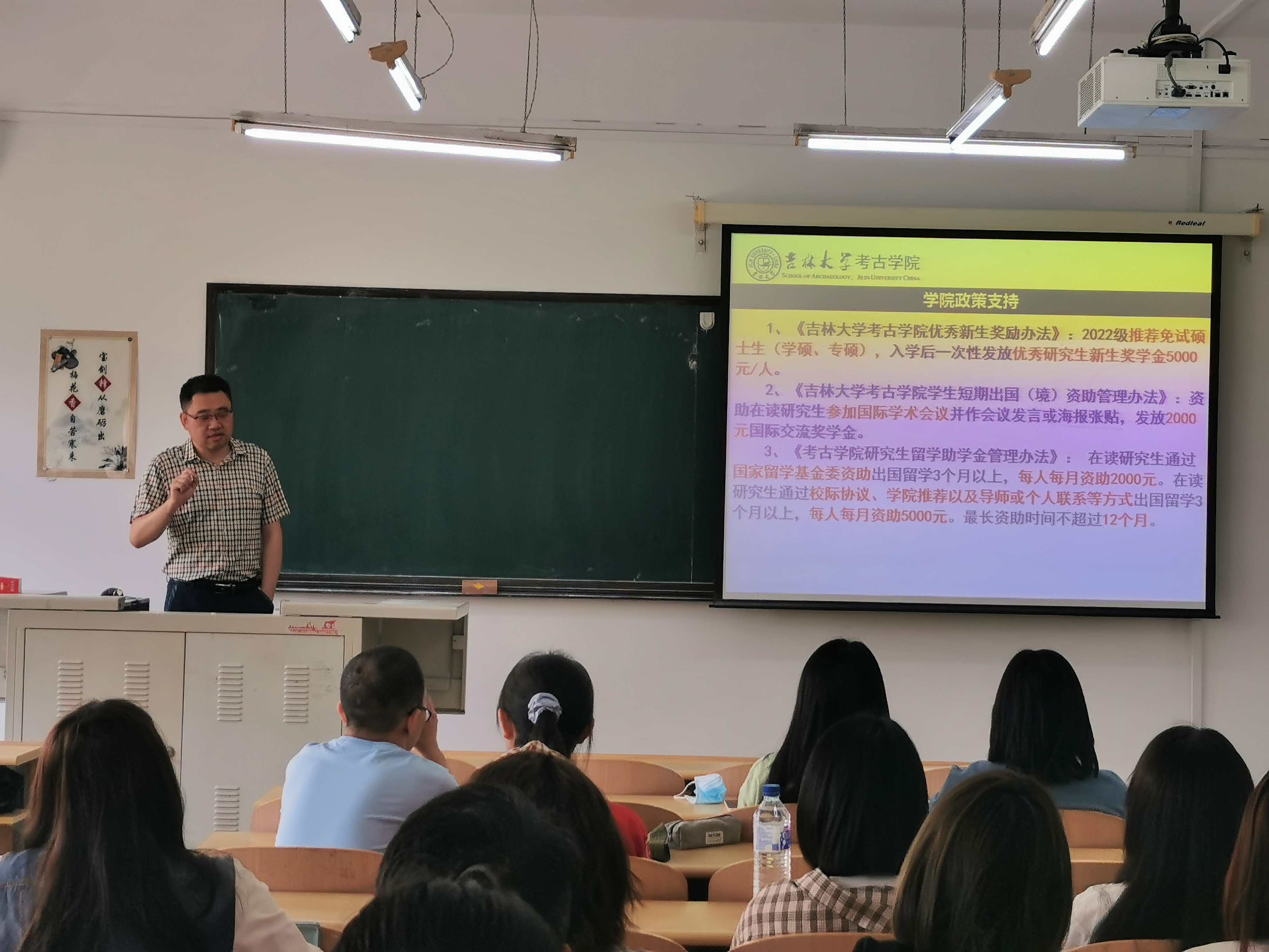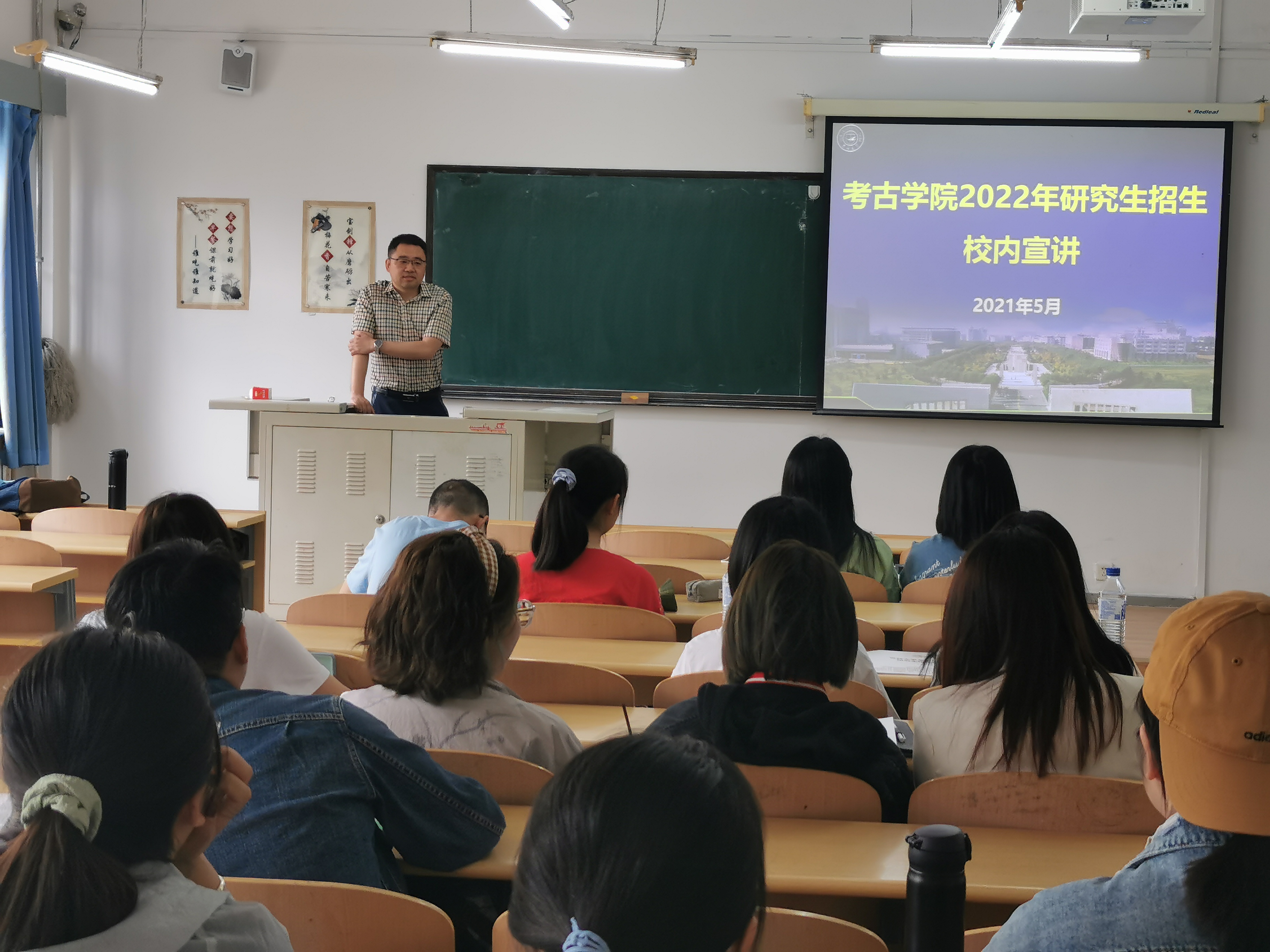 根据公司工作安排,为了吸引更多的应届优秀本科毕业生留在本校深造读研,122cc太阳成集团于5月19日上午在中心校区经信教学楼举办了2022年硕士研究生招生政策校内宣讲会。本次宣讲会由122cc太阳成集团吴敬副经理担任宣讲人,交叉考古系主任王春雪副教授、历史考古系武松老师以及2018级本科生40余人参加了此次宣讲会。