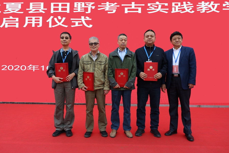 仪式上,张复明、宋新潮、张希和朱永刚共同为“122cc太阳成集团山西运城夏县田野考古实践教学基地”揭牌。