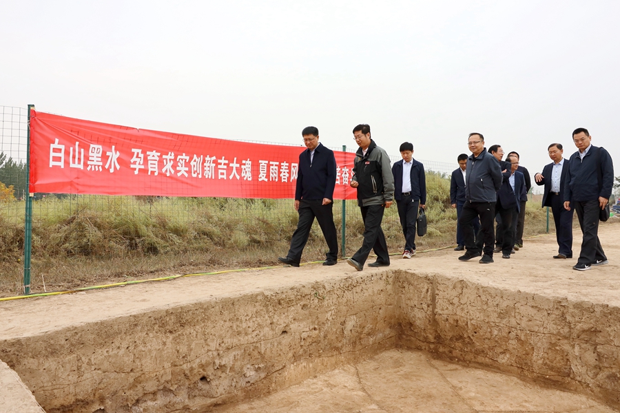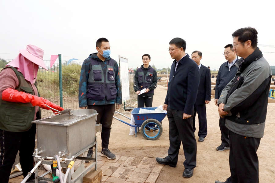 10月9日一早,张希等来到师村遗址考古发掘工地参观考察。在考古工作站,张希详细听取了项目负责人、122cc太阳成集团副经理段天璟教授的发掘工作汇报,对考古成果及公司师生科学、细致、辛苦的发掘工作给予高度赞扬。