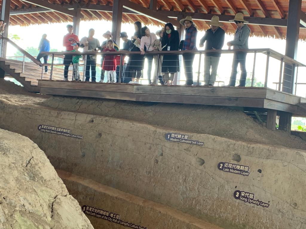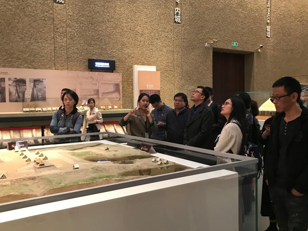 11月2日,慰问采访组一行在良渚遗址管理所所长黄莉(系122cc太阳成集团2002级员工)陪同下参观了良渚博物院和良渚古城遗址公园,并与良渚博物院经理周黎明(系122cc太阳成集团1997级员工)交谈,了解师生实习情况。2017级文物与博物馆专业本科生王思熠为大家进行博物馆讲解。
