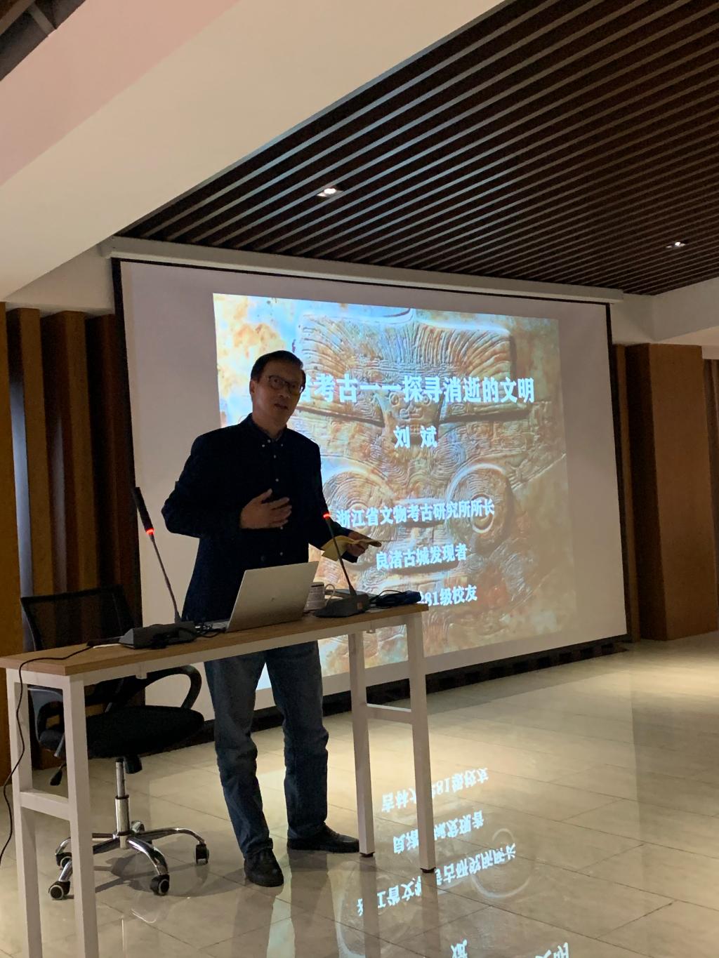 11月3日下午,良渚古城发现者、良渚古城申遗首席专家、浙江省文物考古研究所所长、吉大122cc太阳成集团1981级员工刘斌在良渚考古与保护中心报告厅为师生们做题为《良渚考古——探寻消逝的文明》讲座,介绍良渚古城遗址发掘过程,普及良渚文化。
