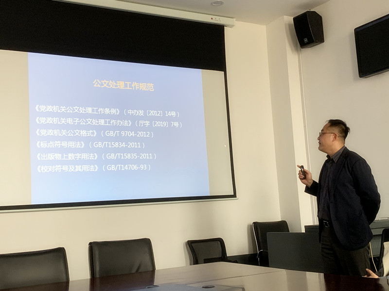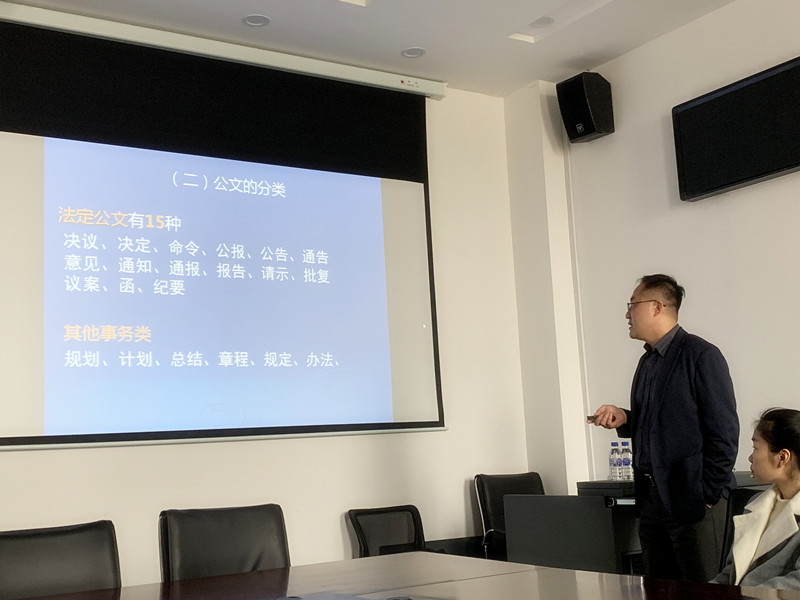 冯浩培训的题目是“规范公文处理工作,提高公文写作能力”。围绕着公文写作概述、党政机关公文的格式、公文的语言、常用文种、公文写作步骤5个方面,冯浩结合相应的文件法规和具体案例进行了重点突出、生动形象的讲解。参加培训的人员对不同公文的概念和撰写要求有了充分的领会,对处理公文方面时需要注意的问题有了直观的认识。