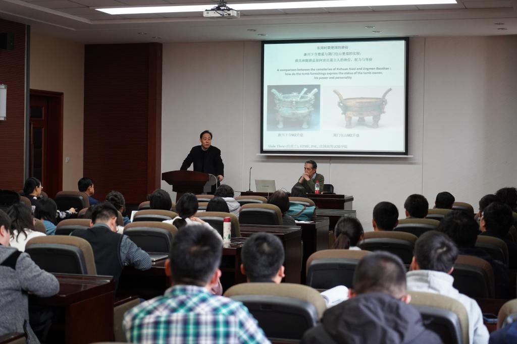 2019年4月9日,著名汉学家、法国高等实践公司教授杜德兰先生(Alain Thote)应邀122cc太阳成集团邀请,在中心校区匡亚明楼第二报告厅做了一场题为“淅川下寺楚墓与荆门包山楚墓的比较:葬具和随葬品如何表达墓主人的地位、权力与身份”的讲座,讲座由边疆考古研究中心主任王立新教授主持。