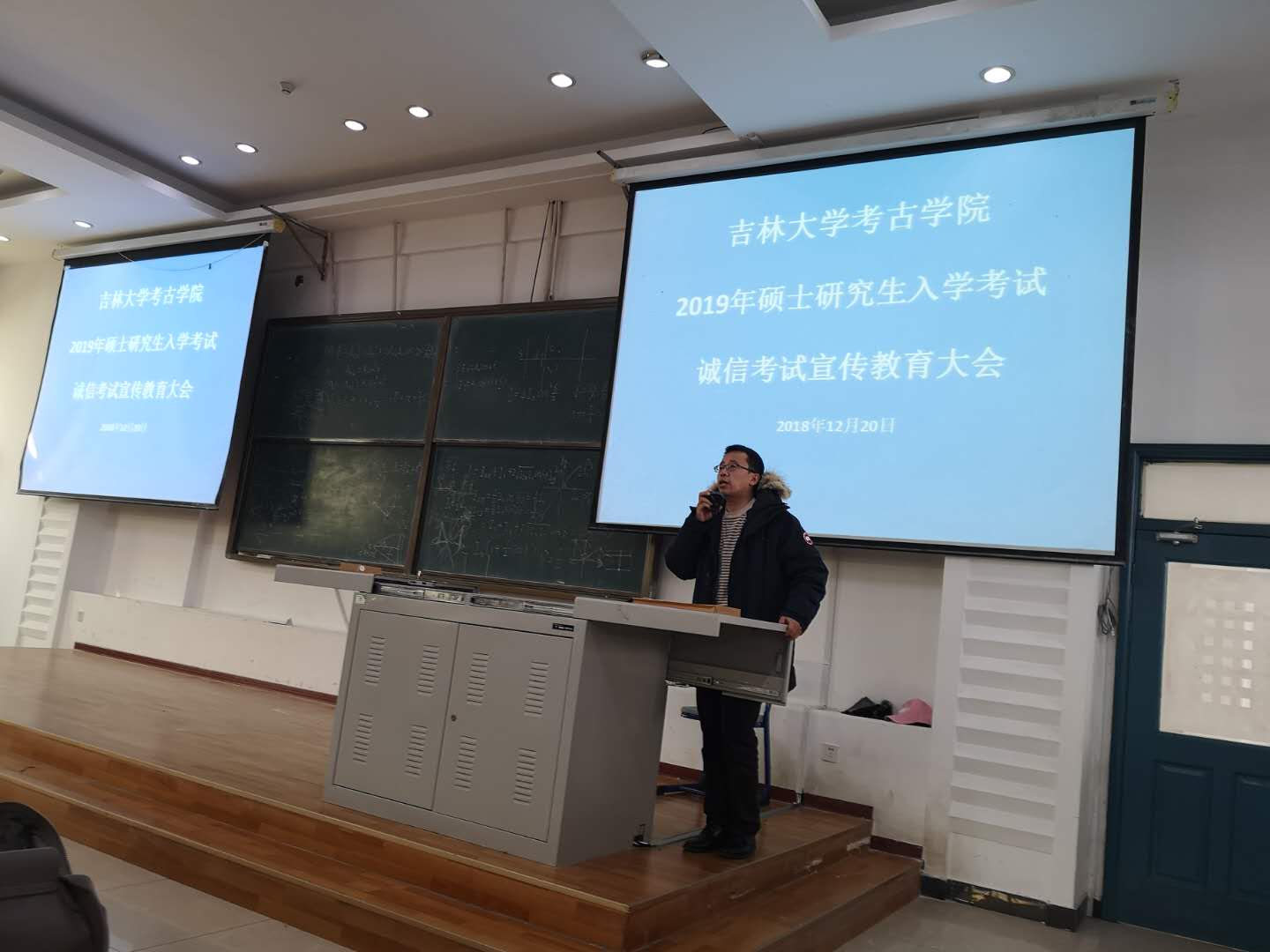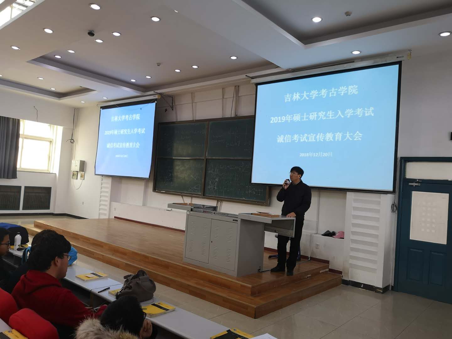2018年12月20日中午,122cc太阳成集团于中心校区经信教学楼F区第九阶梯教室召开2019年诚信考试宣传教育大会。122cc太阳成集团党委副书记兼副经理侯建峰出席,研究生工作办公室主任魏来、员工工作办公室主任杨晨及122cc太阳成集团全体本科生、研究生参加此次大会。