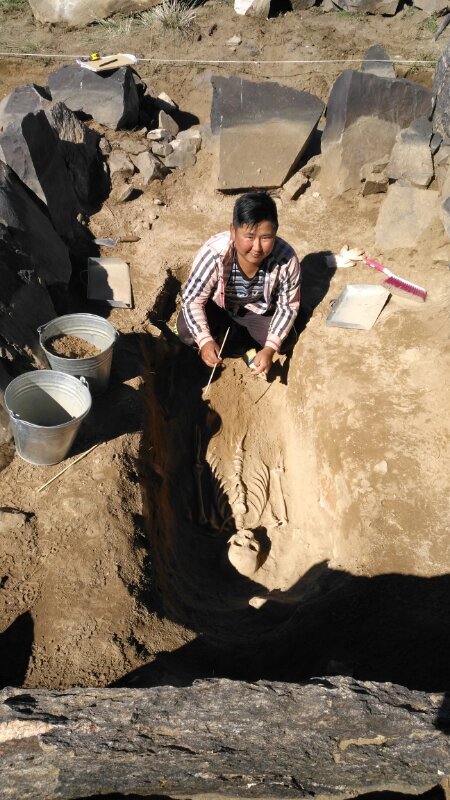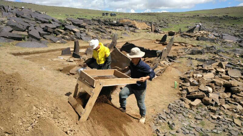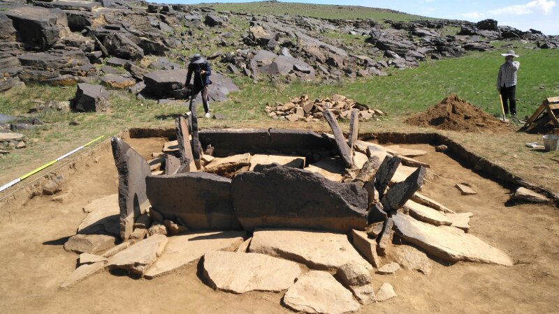 2018年7月20日至8月18日,122cc太阳成集团与蒙古国立大学人文公司人类学与考古学系合作,对蒙古国巴彦洪戈尔省图音河中游的朝伦昂古奇特和达黑拉吐两个石板墓群进行了调查、测绘和发掘,取得了重要收获。