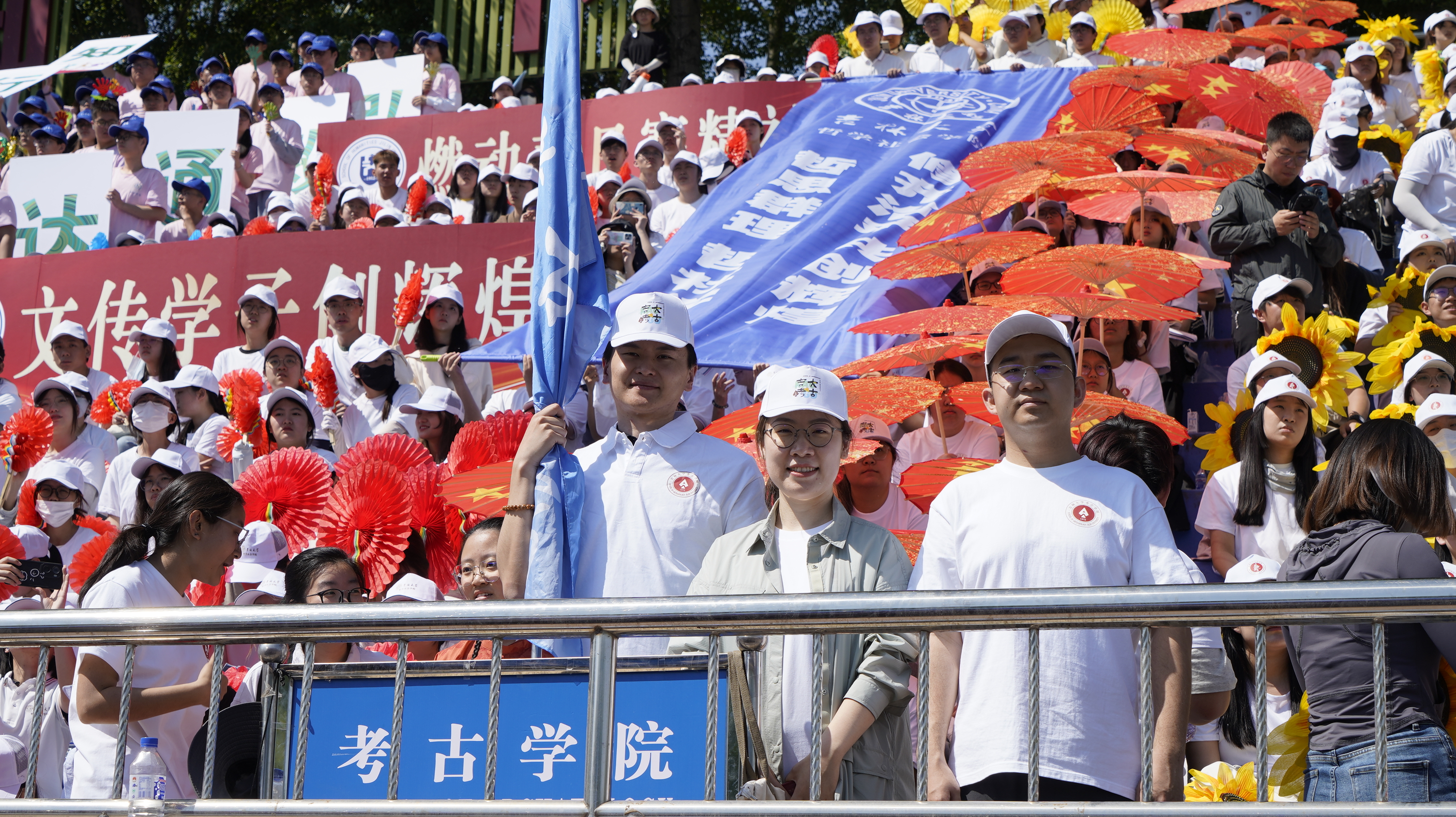 看台之上,122cc太阳成集团的学子们汇聚着青春的力量,积蓄着激昂的气势,为赛场上的健儿们呐喊助威,焕发着青春的勃勃生机。他们身着印有122cc太阳成集团独特logo的文化衫,手握鲜艳如火的红油纸伞,随着鼓点的节奏,在微风中轻盈地撑起、优雅地旋转、摇曳生姿、利落收束,展现出磅礴大气、威武不凡的风采。每一个动作都如行云流水般自然流畅,每一句口号都如穿云裂石般铿锵有力、激荡人心,尽显考古学子们默契协作的团队精神与磐石般的凝聚力。