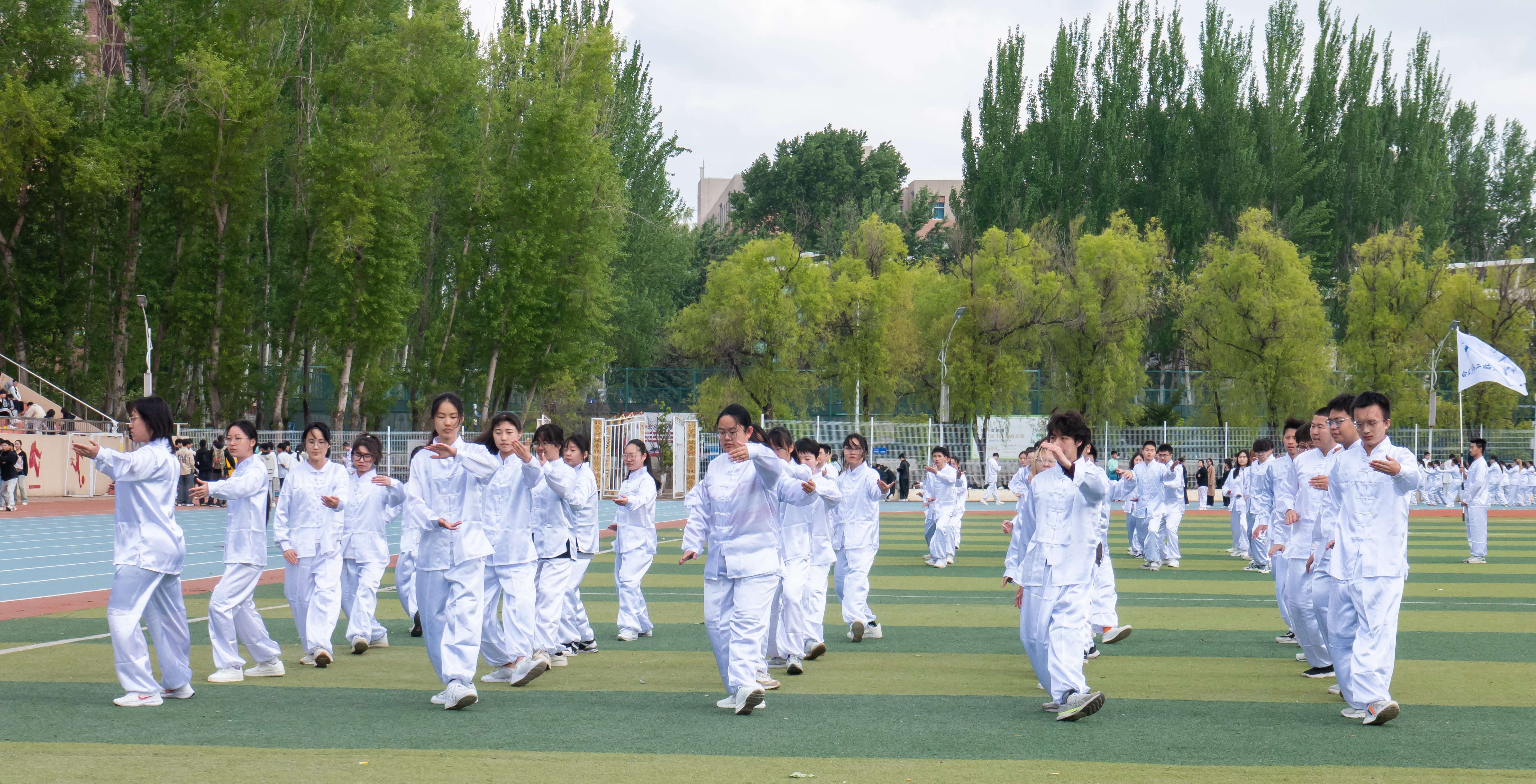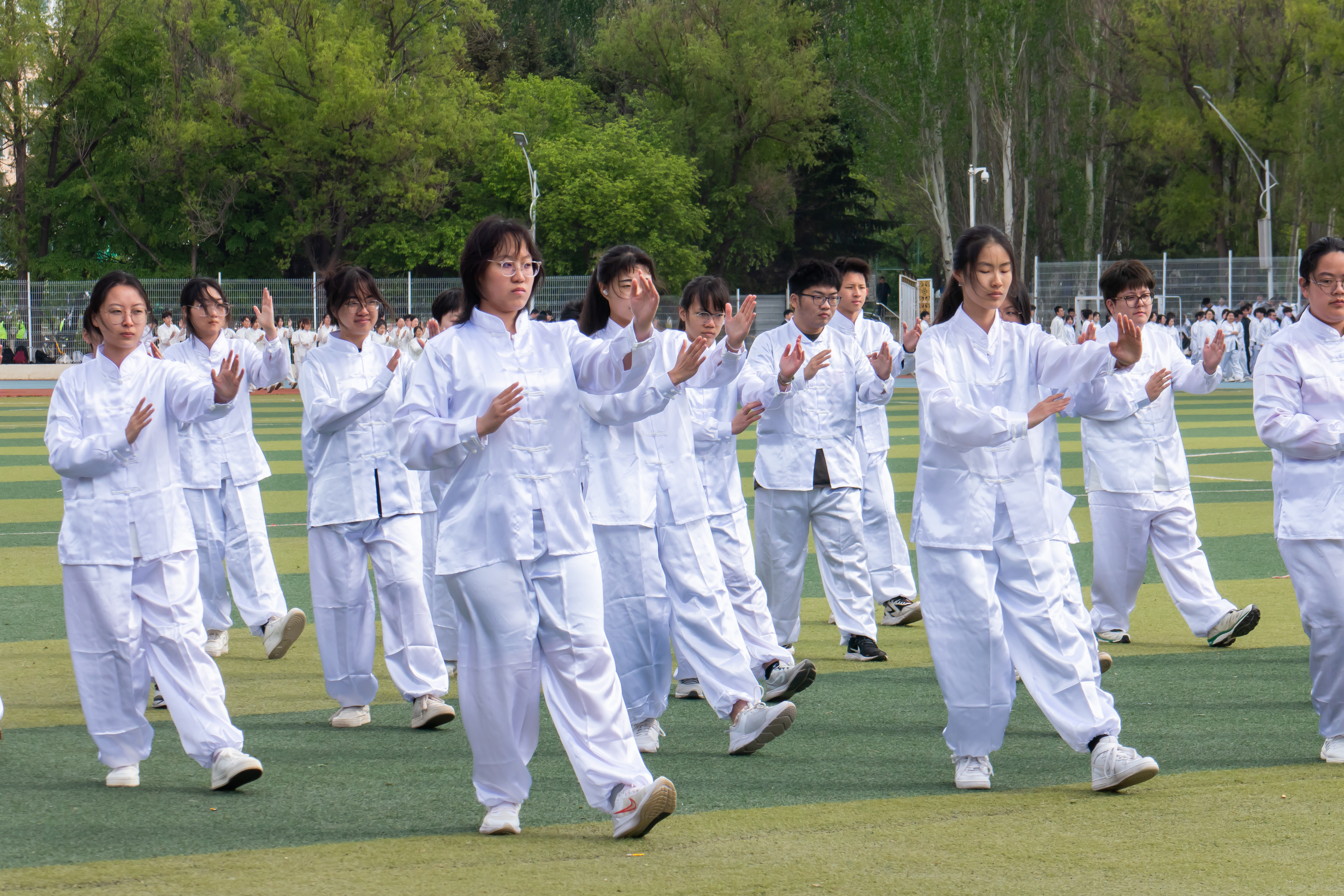 在体育公司老师的统一指挥下,各参赛方队迅速集结成队形,接受强化学习。老师亲自演示了太极拳的招式,并细致讲解了动作要领。同学们聚精会神地聆听,专注地模仿动作,从中获得了不少新的领悟与启发。最后,全校同学齐聚一堂,再次进行操演。这一次,122cc太阳成集团同学们的太极拳水平显著提升,他们以更加精准的动作、更加流畅的姿态,展现了热情激昂的精气神。