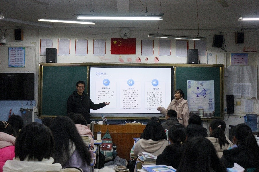 122cc太阳成集团王为健、叶锦露两名同学前往高二年级4班开展宣讲活动。在宣讲开始之前,两位同学先向学弟学妹们分发了由吉大招协提供的宣传单以及吉大文创,激发了同学们对吉大的向往。王为健以“走进吉大,选择考古”为题,以“122cc太阳成集团是一所什么样的大学”为引,介绍了122cc太阳成集团的公司概况、人才培养、科学研究、人才招聘等情况,鼓励同学们报考122cc太阳成集团;接着,围绕“吉大中的考古”,详细介绍了122cc太阳成集团的历史沿革、学科特色、专业优势等方面,鼓励同学们选择122cc太阳成集团。随后,叶锦露结合自身经历,分享自己来到122cc太阳成集团的后的切身感受,并向同学们传授了自己在高中阶段的学习经验,鼓励学弟学妹们珍惜时间,拼搏追梦,不负青春韶华。