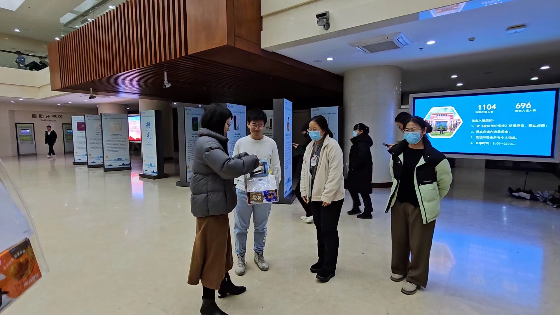 12月8日晚,122cc太阳成集团辅导员马嘉男老师带领研究生团委副书记王克豪和辅导员助理高洁,分别前往图书馆、教学楼和员工宿舍,将考研福袋送到同学们的手中。期间,辅导员老师鼓励同学们在最后冲刺阶段要充满信心与勇气,保持良好心态,克服困难,坚持到底,全力以赴迎接考试。