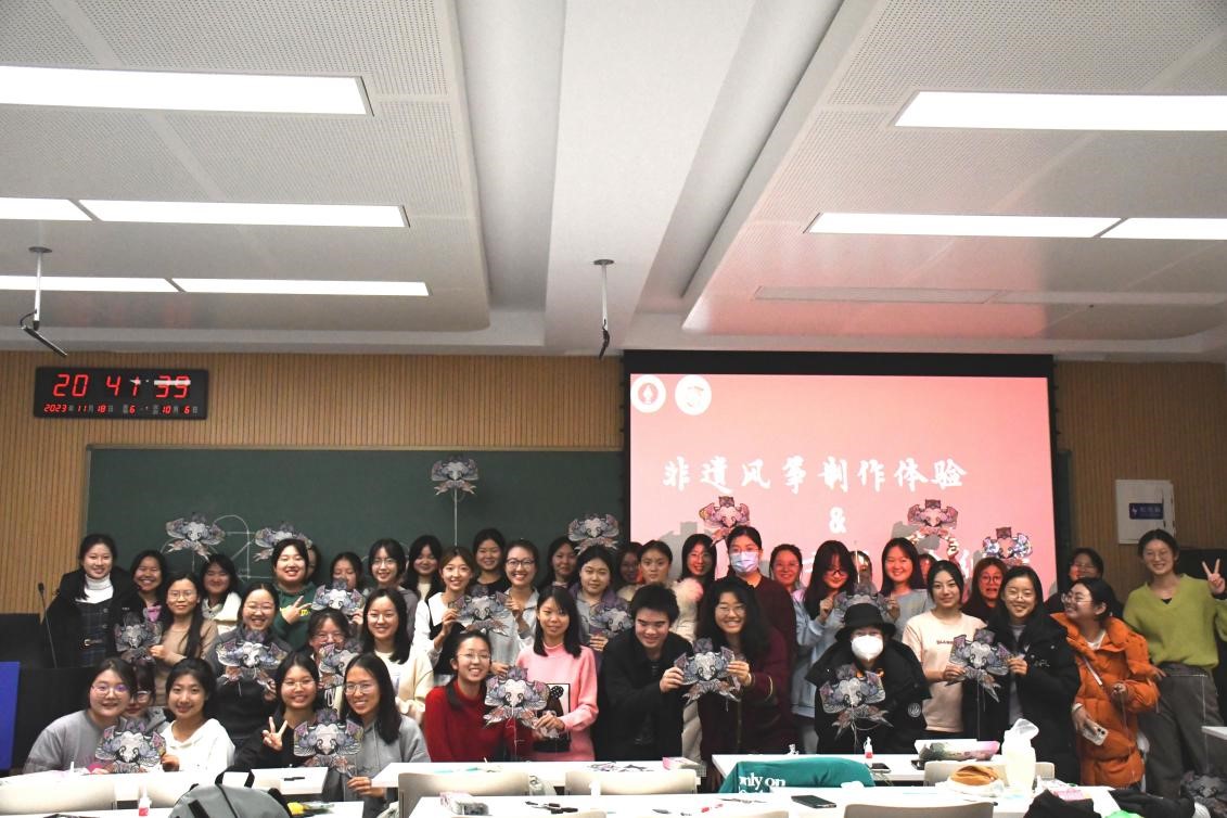 “这个骨架该怎么扎呀”“请问这里要留多少厘米呀”“我们组差不多啦!”……在大家和文保协会的成员们的共同努力下,25只风筝在一个多小时之后大功告成。教室里的欢声笑语此起彼伏,保护文化遗产意识的种子也种进每一位同学心间。