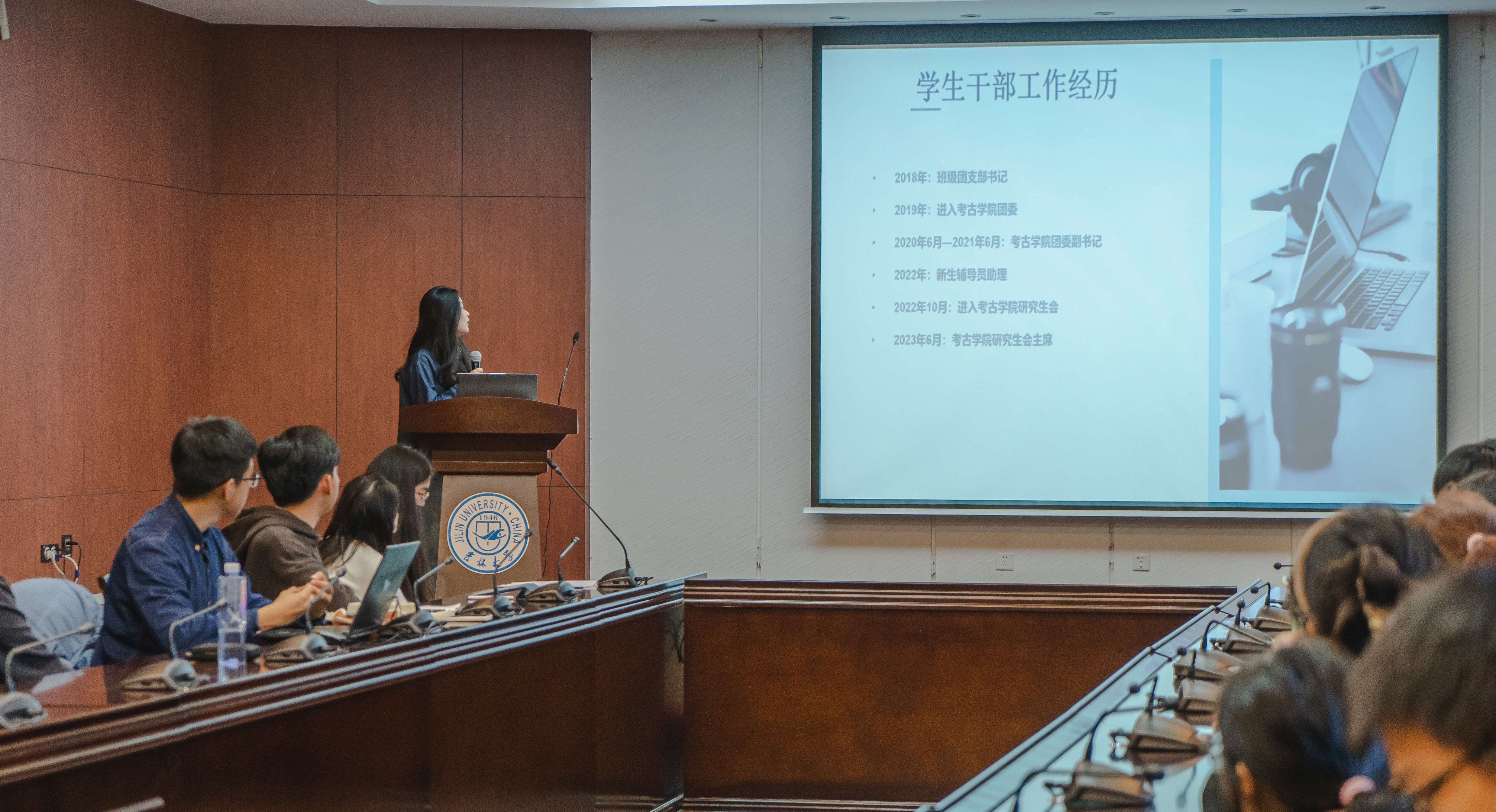 2020级考古班高洁回顾自己两年的团员工涯,从最初竞选的迷茫,到团学指引其方向,再到团学赋予其力量,勉励同学们脚踏实地,认真履行工作职责,全心全意为同学服务,不忘初心,共获梦想。同时向同学们提出建议,一定要用专业学习和员工工作“两条腿走路”。
