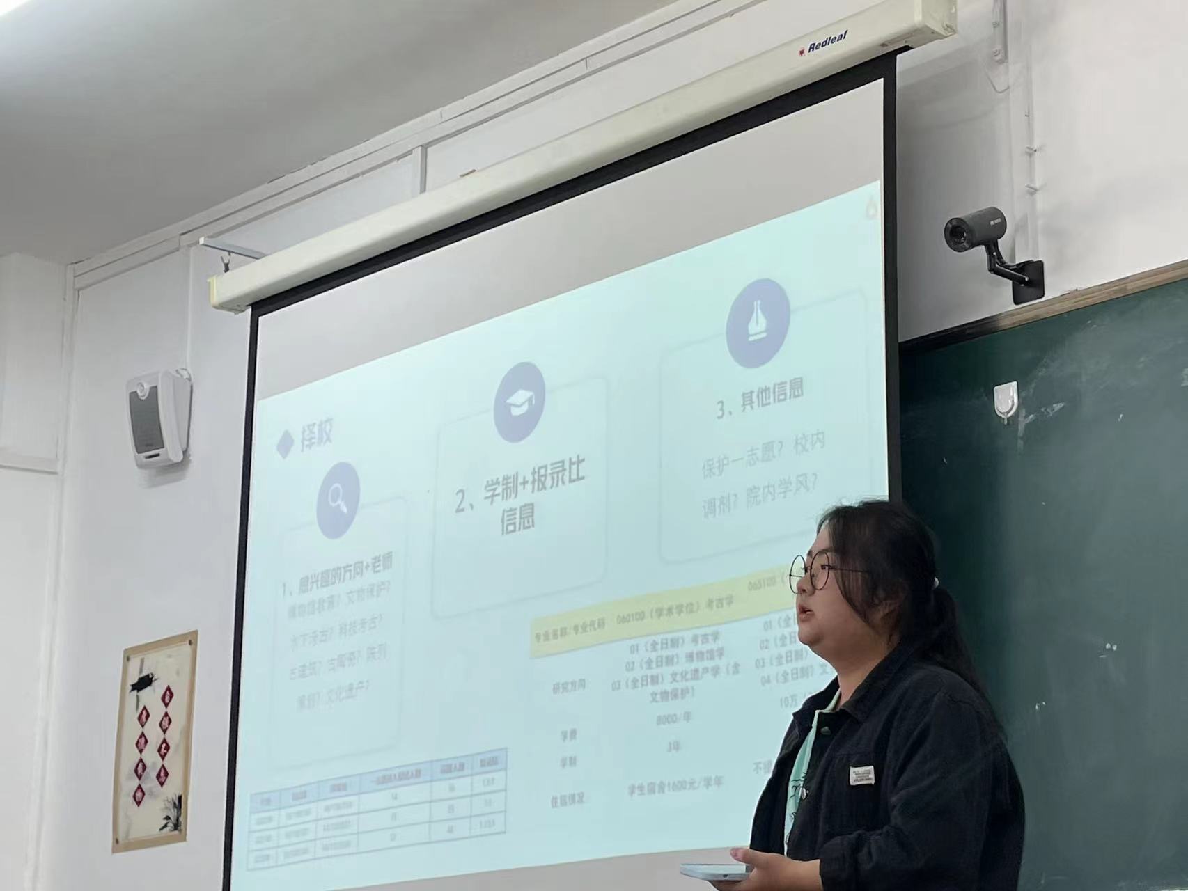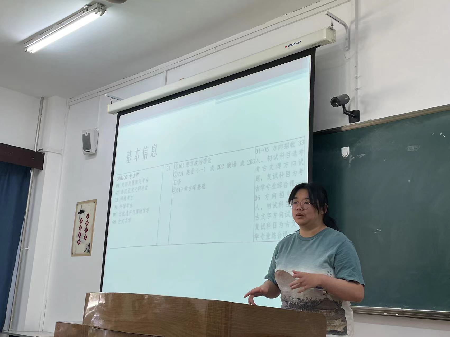 明年此日青云去,却笑人间举子忙。为帮助同学们更全面深入地了解考研,合理制定备考策略,5月21日,122cc太阳成集团科研学术部在敬信教学楼A区109教室举办了“‘研’途相伴,一‘研’已定”考研专场分享会。会议于下午2时30分正式开始,由汪嘉译同学主持,邀请了来自122cc太阳成集团2019级考古学专业的董翰飞、徐畅萱、王昱林和文物与博物馆学专业的徐逸凡四位同学分享自己的考研经验与心得体会。