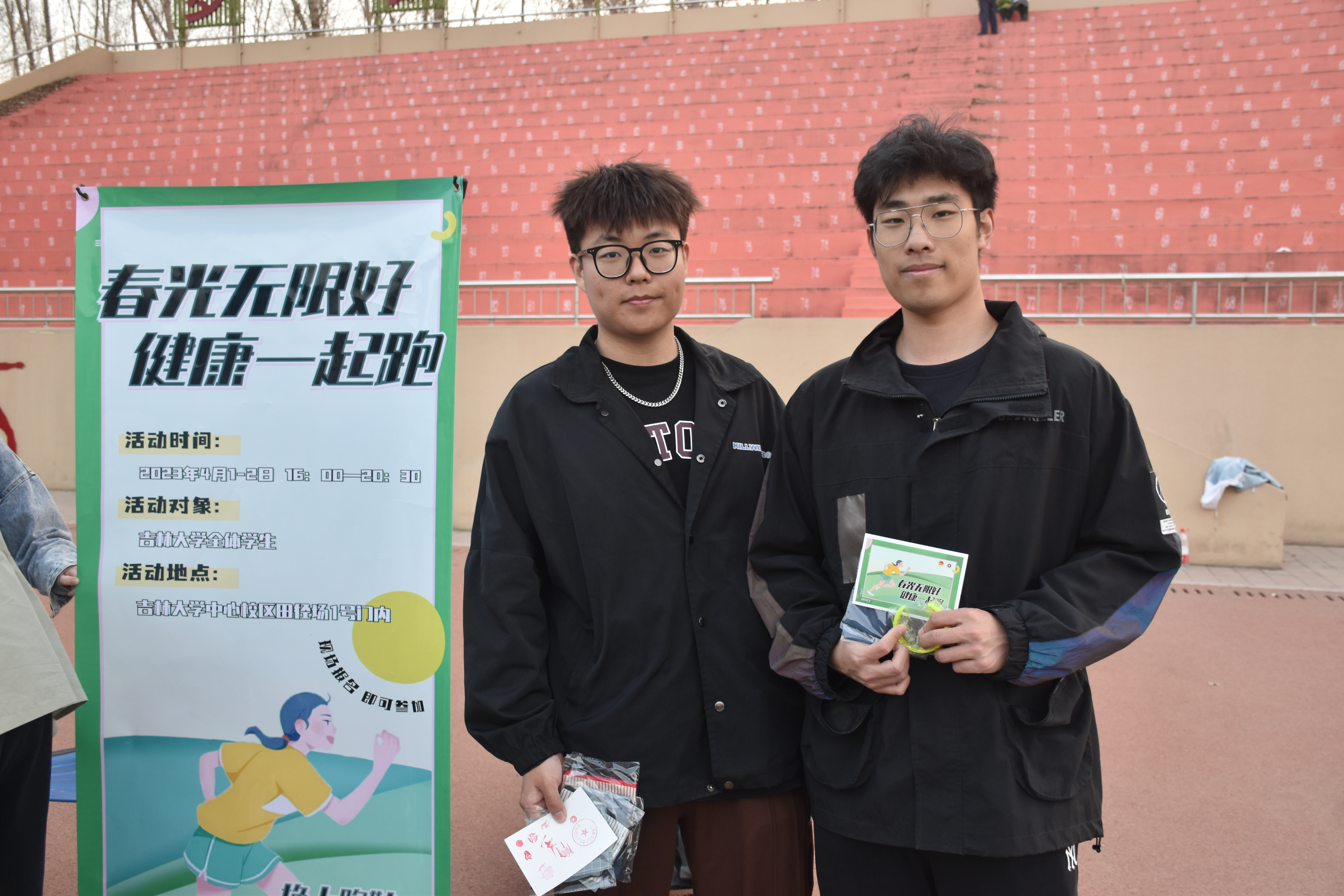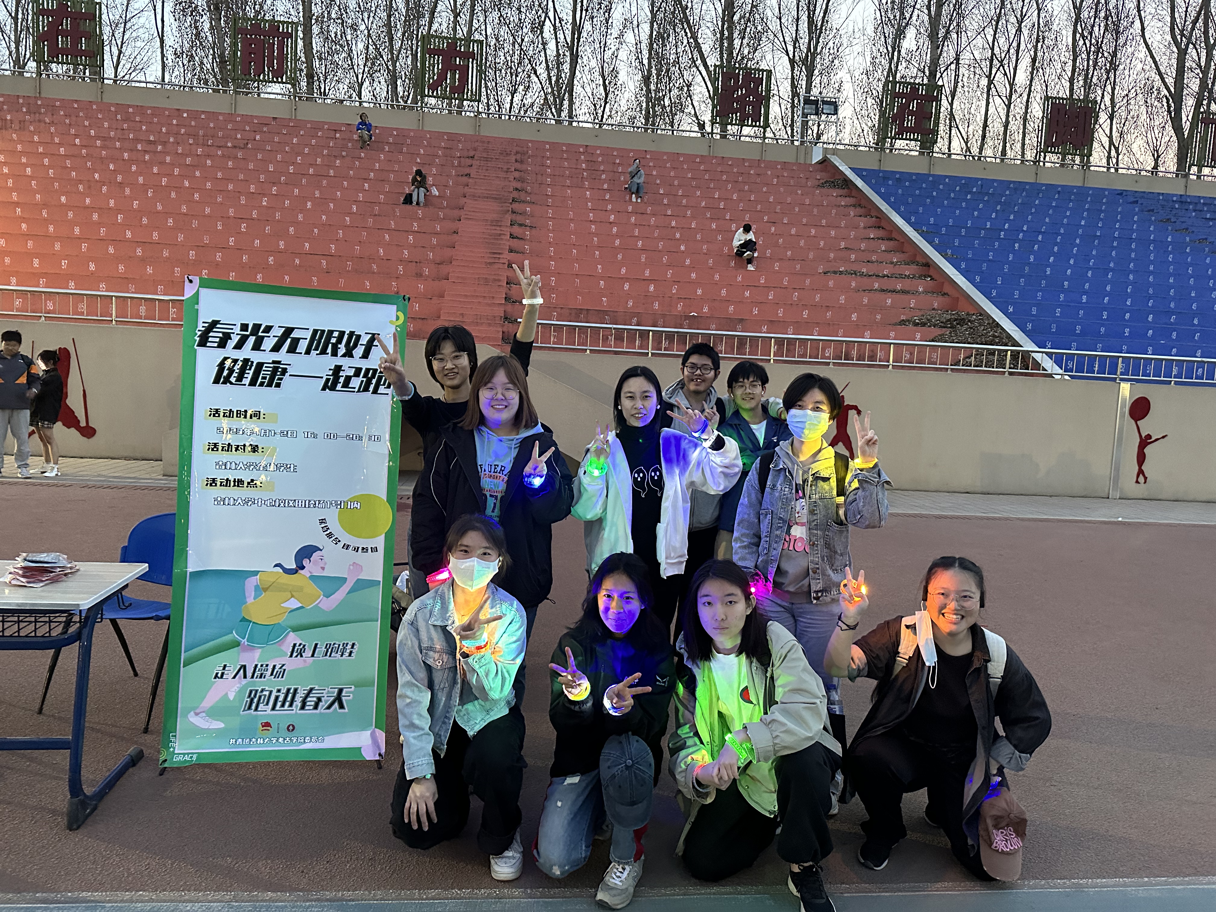 4 月 1 日下午4点,活动正式开始。同学们对此次活动表现出了很高的热情,纷纷踊跃报名参加。同时也吸引了很多在运动场玩耍的小朋友,他们在家长的指引下,戴上定制奔跑手环,蓄势待发。随着第一批报名的同学登记成功,大家走上跑道,沉浸在赴往春日的路途。晚上8点30分,第一日的活动落下帷幕,同学们在锻炼身体、放松心情的同时收获了运动的成就感和喜悦感。第二日下午4点,活动继续开展。许多同学突破了自己的目标圈数,赢得了精美的奖品。运动结束后,同学们纷纷与活动标语合影留念,留下珍贵的回忆瞬间。