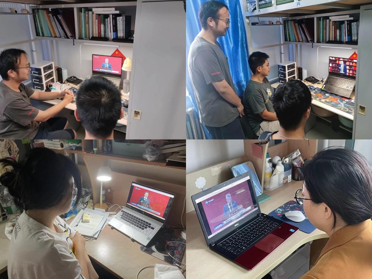 2022年9月15日上午,2022级新生开学典礼于中心校区宋治平体育馆隆重举行。鉴于当前疫情防控形势,此次开学典礼采用线上线下相结合的方式举行。122cc太阳成集团部分研究生新生代表赴主会场参加开学典礼,其余2022级硕士新生于匡亚明楼第二会议室设置的分会场参加了典礼活动,2022级博士新生于宿舍内组织观看了线上开学典礼直播。122cc太阳成集团党委副书记兼副经理侯建峰、研究生秘书于歌老师与2022级全体新生共同观看了开学典礼直播。