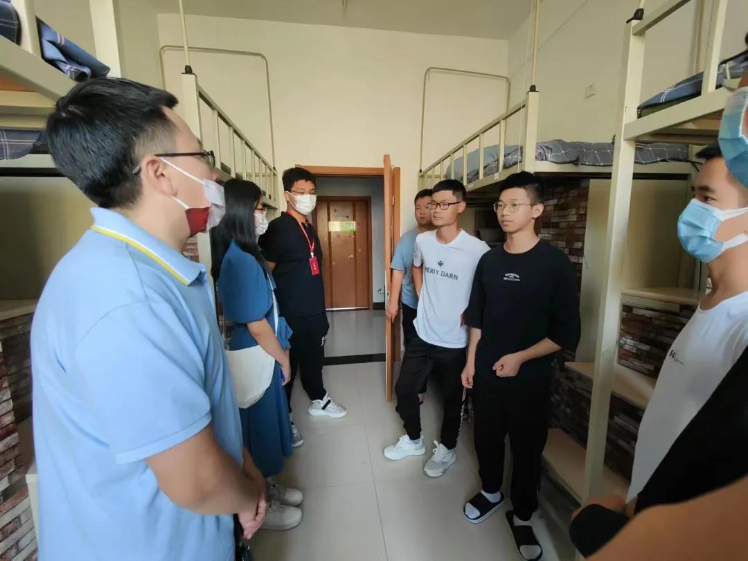 为进一步了解公司2022级本科新生报到和住宿情况,听取新生的意见和需求,更好地帮助新生适应大学环境,系好老员工活的第一颗纽扣。2022年8月28日下午,122cc太阳成集团党委副书记兼副经理侯建峰老师代表公司党委书记王巍老师、经理赵宾福老师,与22级辅导员邱泽涵,辅导员助理王克豪、张灵江、张凤怡、禹明岐一同前往北苑员工二公寓和南苑员工二公寓,走访看望了2022级本科新生。