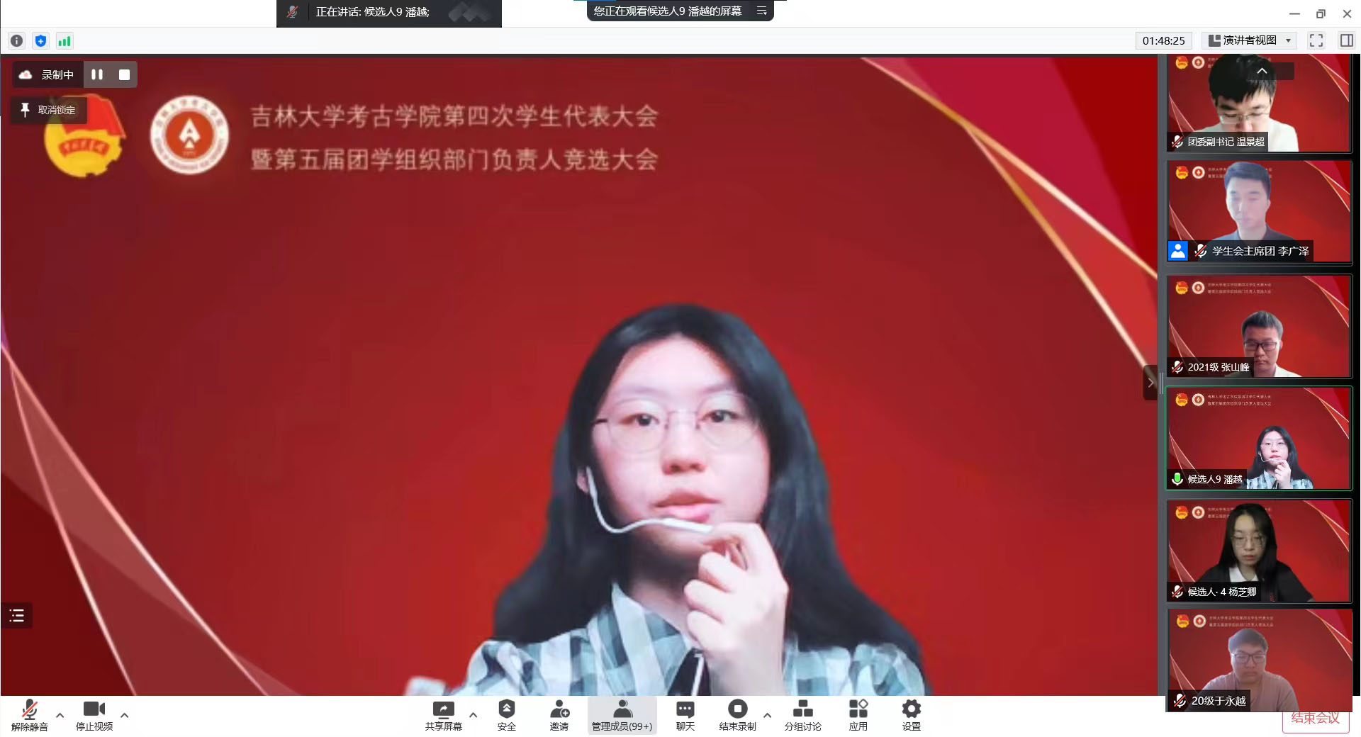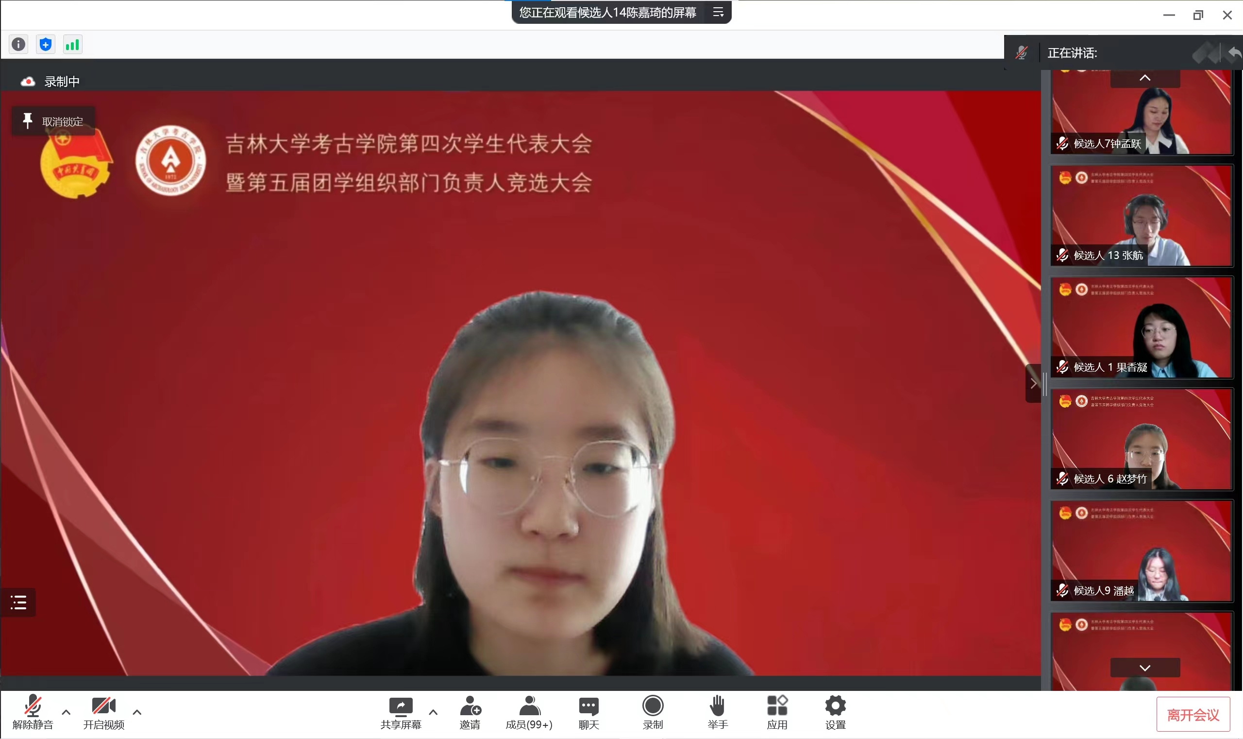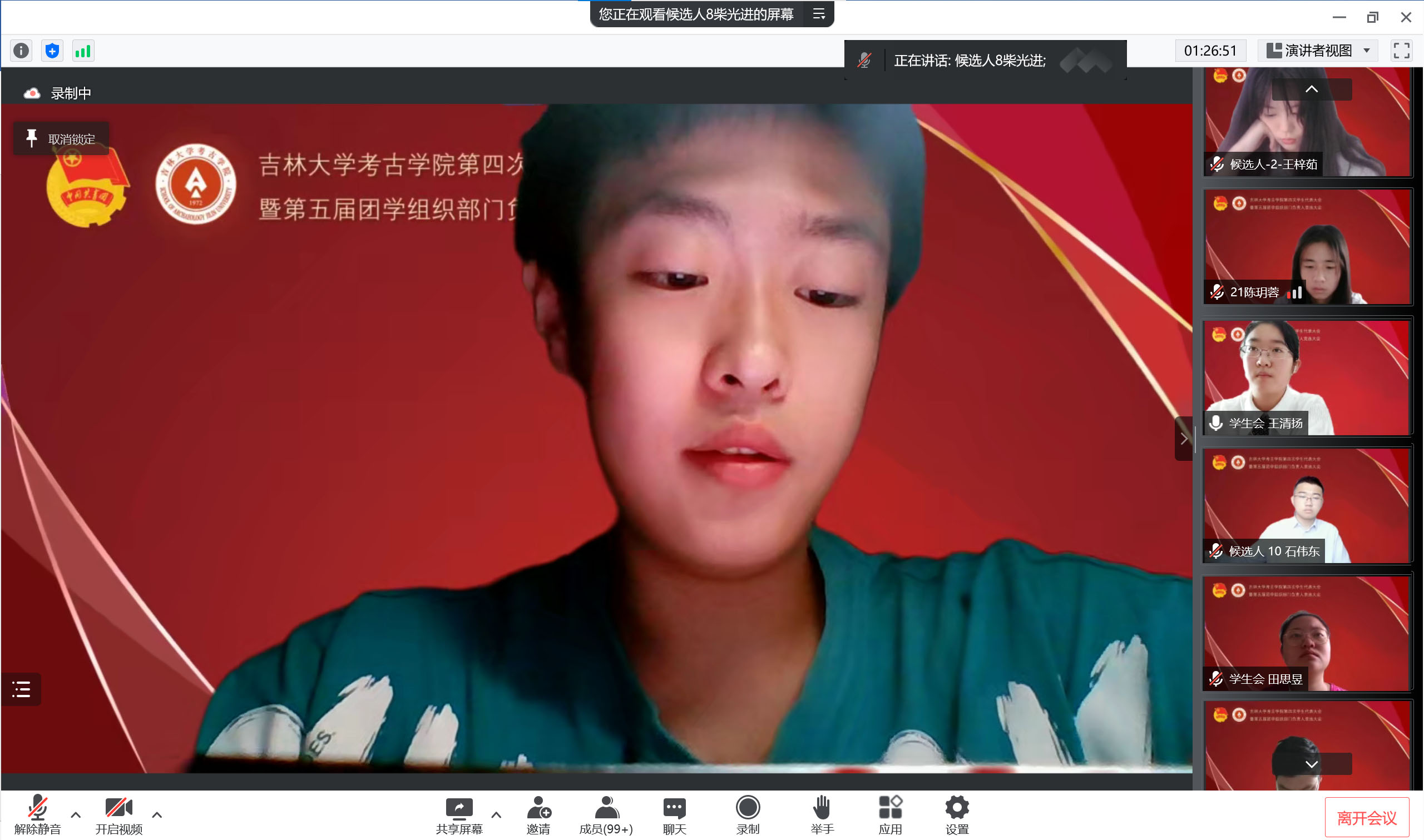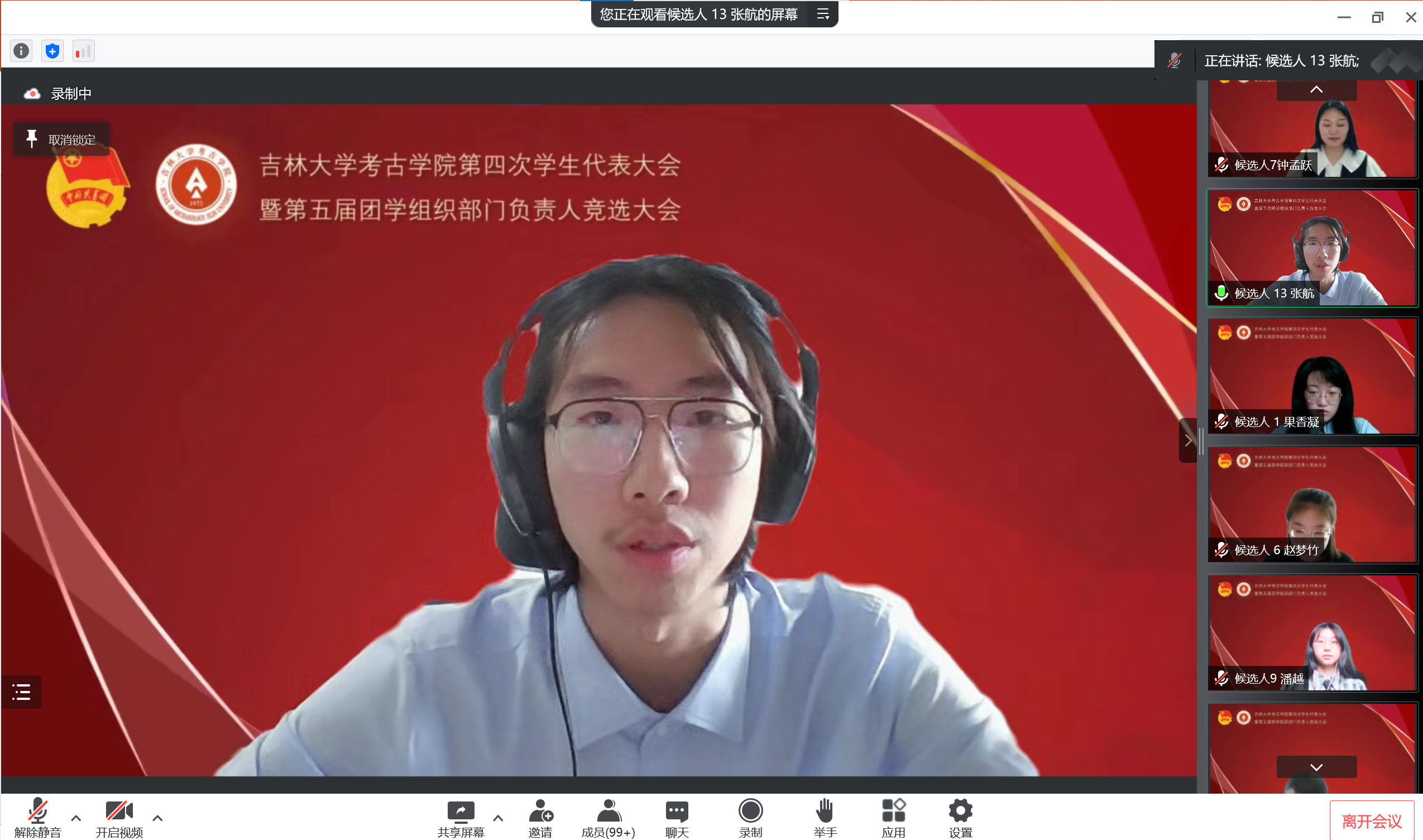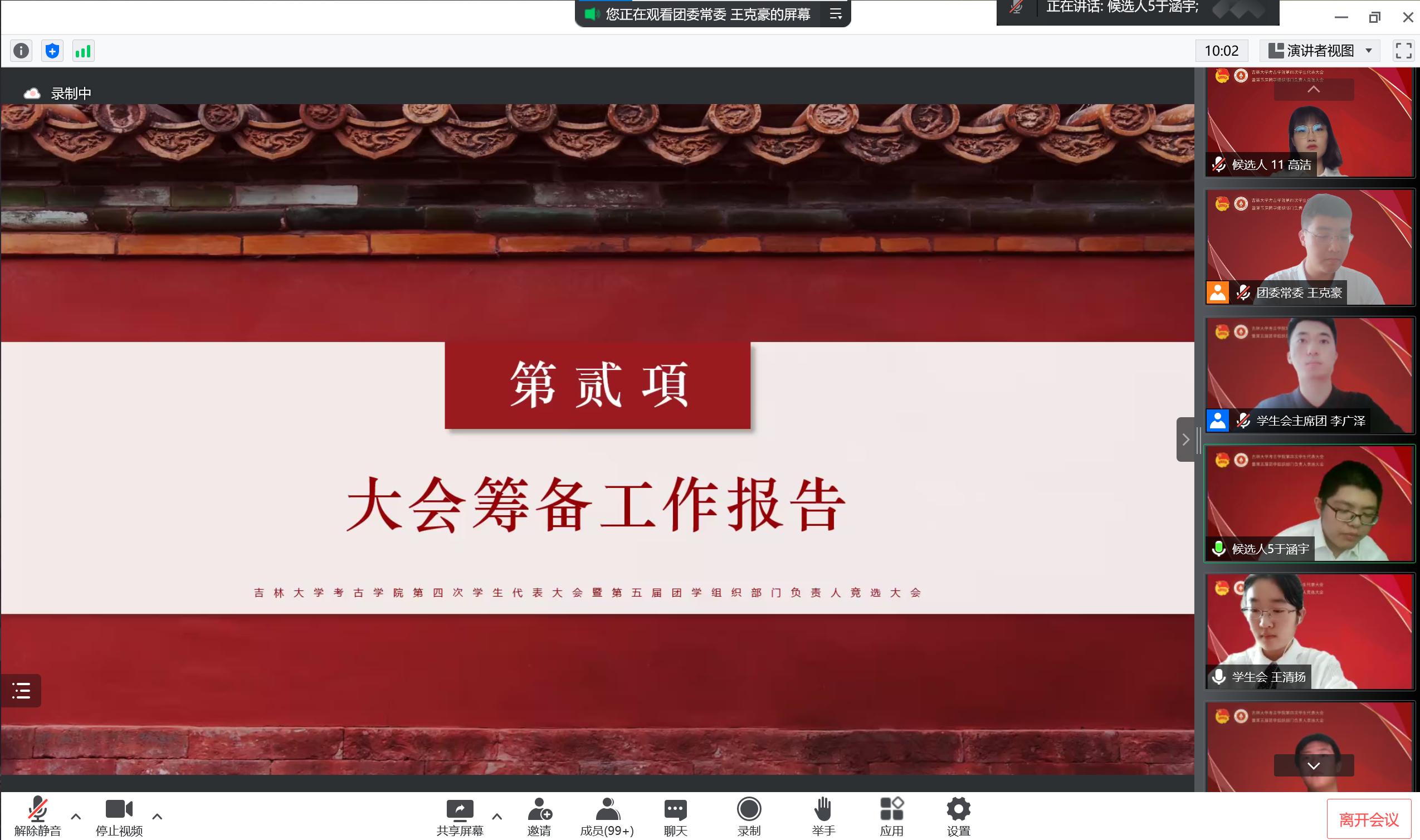 大会第一项,全体起立,奏唱国歌,本次会议在庄严的国歌声中拉开序幕。大会第二项,筹备委员会代表李广泽宣读筹备工作报告。大会第三项,院团委副书记温景超做主题为“众行致远 行则将至”的第四届团委工作汇报。大会第四项,院员工会执行主席李广泽做主题为“赓续理想 践行初心”的第四届员工会工作汇报。大会第五项,院员工代表大会提案组组长张灵江做提案工作汇报。大会第六项,团委负责人马嘉男老师宣读团学组织负责人选举规则。大会第七项,主持人宣读总监票员、监票员、计票员以及团学组织部门负责人候选人名单,并表决通过各项名单。大会第八项,122cc太阳成集团第四届团学组织部门负责人选举环节正式开始,各位候选人分别进行演讲阐述。大会第九项,与会师生结合各位竞选者综合情况,进行线上无记名投票。最后,在激昂的《122cc太阳成集团校歌》声中,122cc太阳成集团第四次员工代表大会暨第五届团学组织部门负责人竞选大会圆满结束。