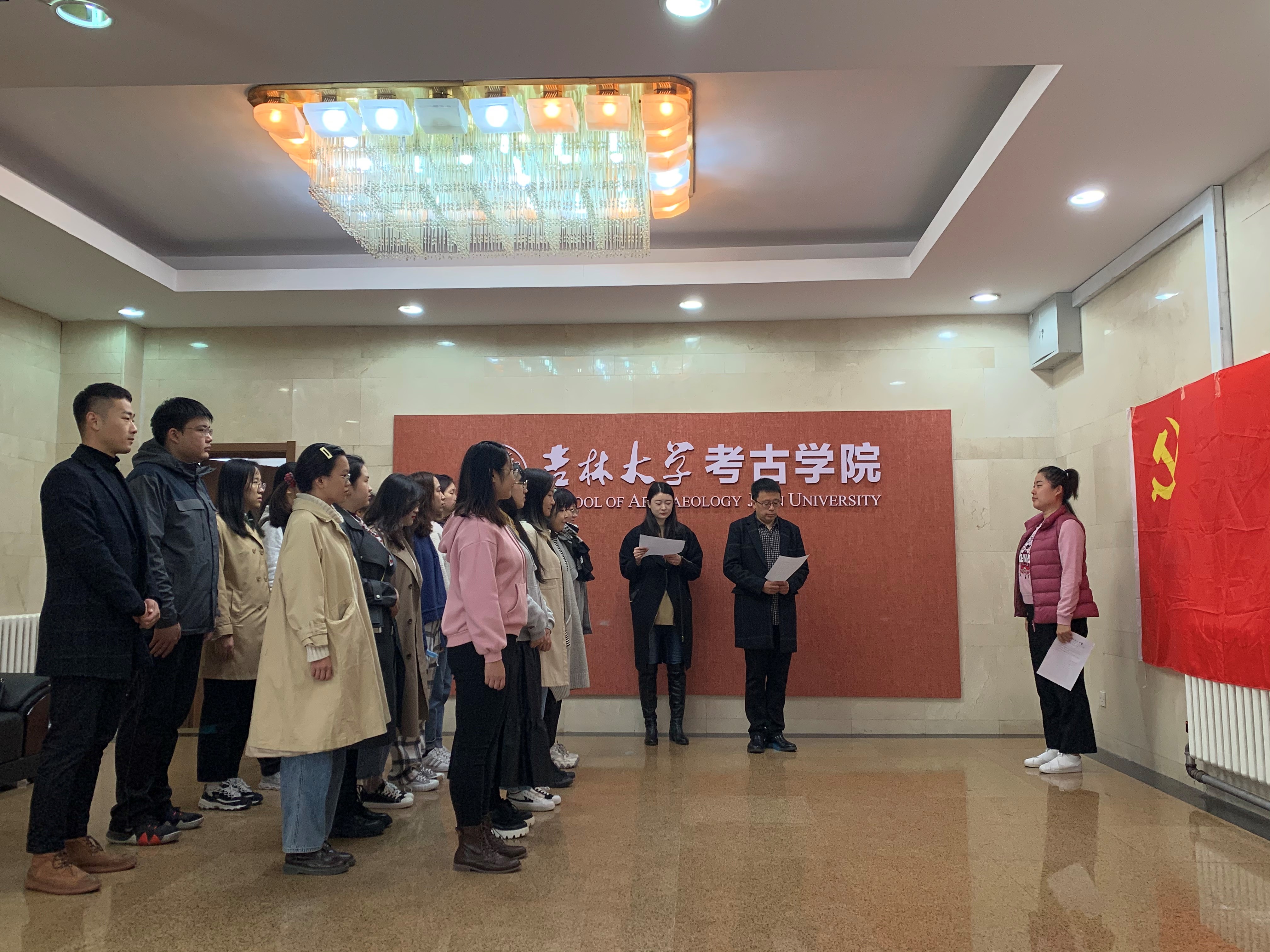 2020年10月9日上午,122cc太阳成集团在行政楼一楼为2018级硕士生党支部、博士生党支部、古籍所研究生党支部新发展的15名党员举行集体入党宣誓仪式。参加这次入党宣誓仪式的有122cc太阳成集团党委副书记兼副经理侯建峰同志、杨晨同志、郑凡一同志,以及15名新发展的党员。会议的第一项议程是全体同学奏唱《国际歌》。会议第二项议程是郑凡一同志宣读参加入党宣誓的预备党员名单。会议第三项,15名预备党员面向党旗,举右手进行庄严宣誓。