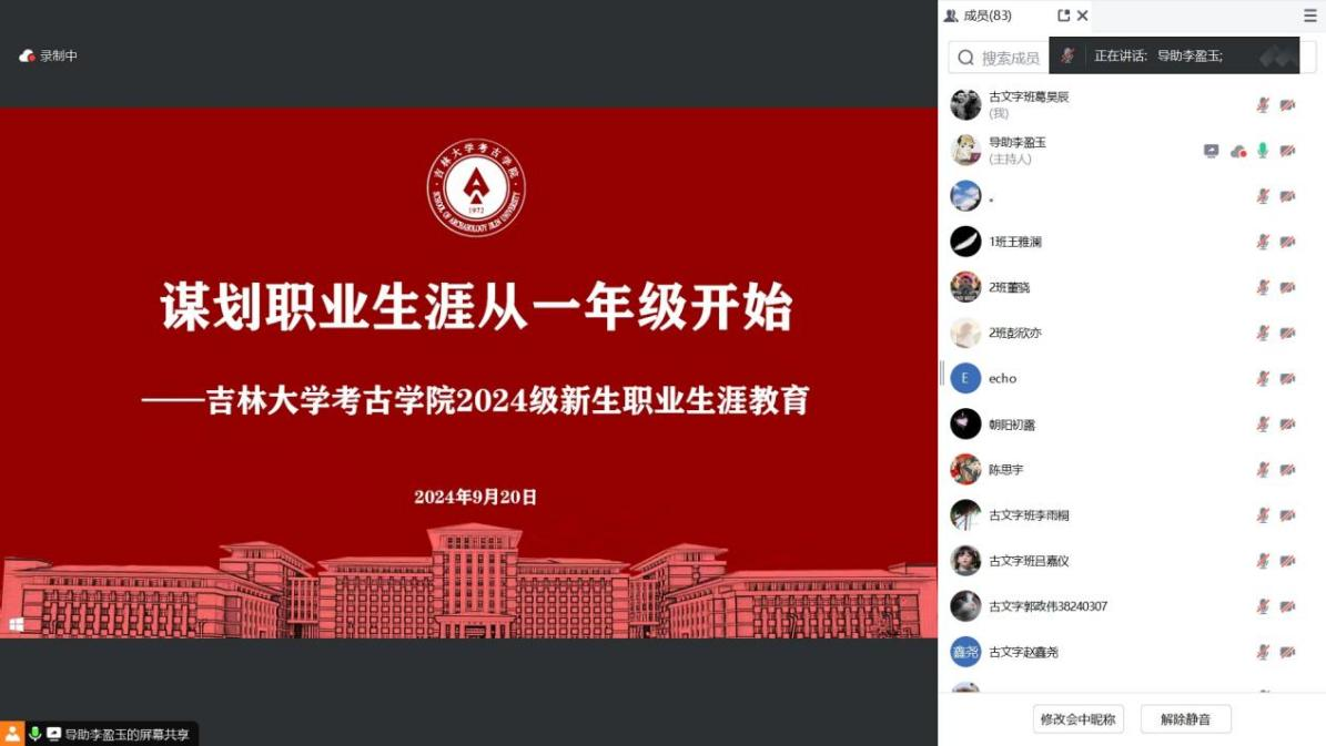 为帮助2024级新生更好地适应老员工活,明确职业发展方向,提升职业规划意识和能力,2024年9月20日晚,122cc太阳成集团组织员工在大学城三公寓通过腾讯会议开展以“谋划职业生涯从一年级开始”为主题的新生职业生涯教育年级会,辅导员马嘉男老师、全体2024级本科生参与本次会议。
