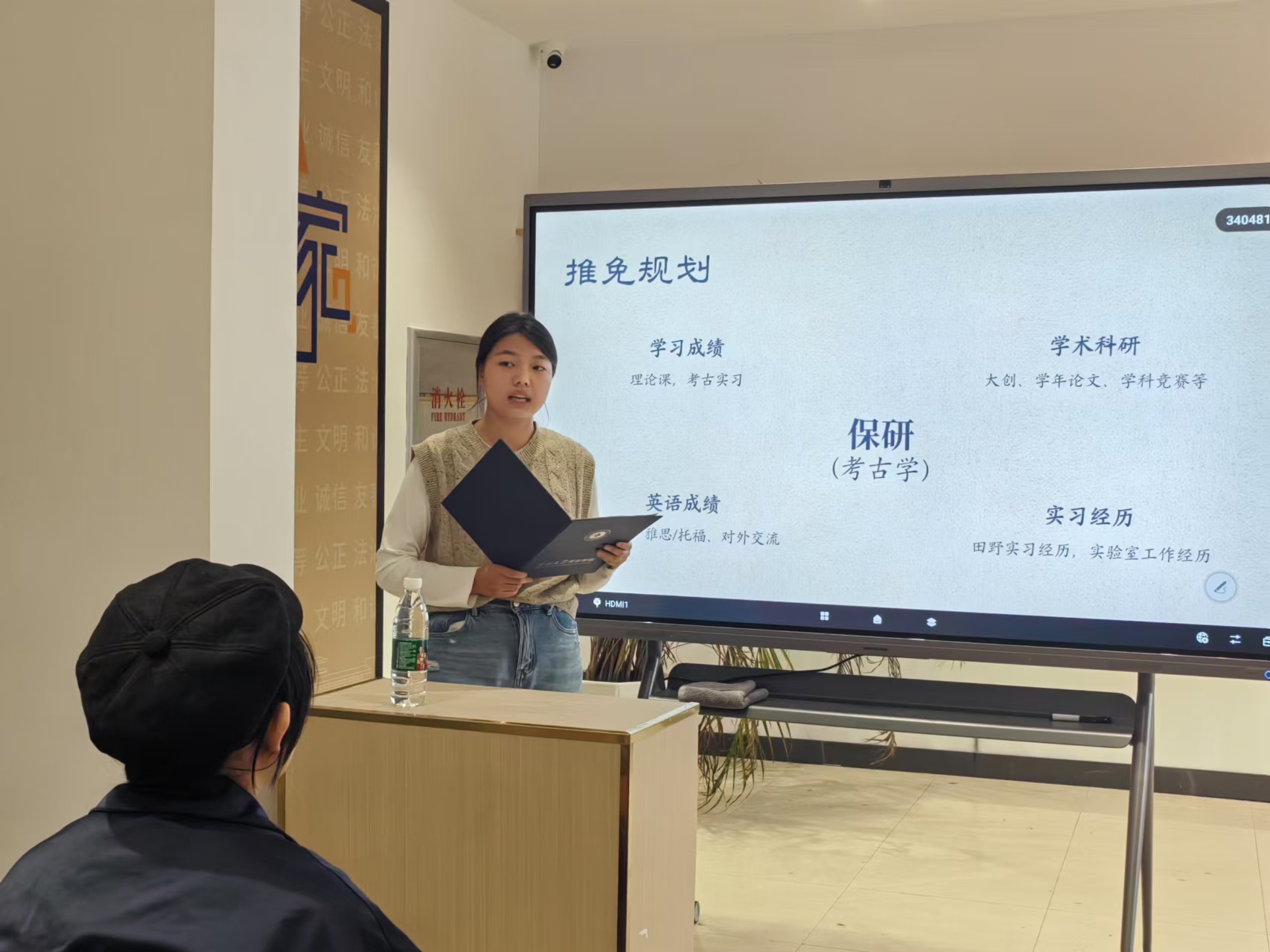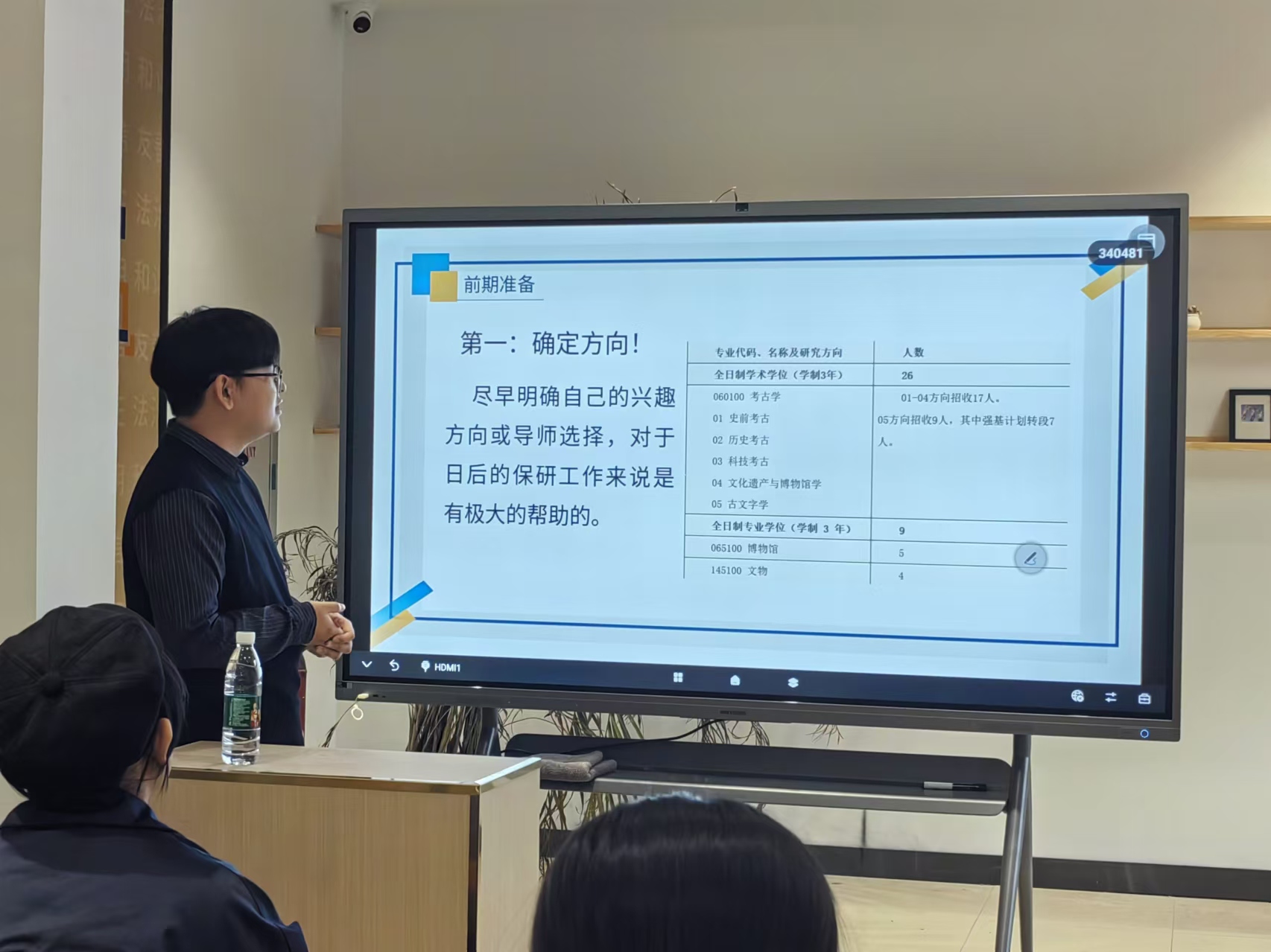 为充分发挥优秀员工的引领作用,营造浓厚学术氛围,122cc太阳成集团员工会科研学术部于11月10日举办保研专场分享会。本次分享会由科研学术部杨欣怡主持,122cc太阳成集团副经理方启老师莅临现场进行专业指导,2021级考古学专业赵梦竹、禹明岐,文物与博物馆学专业车佳南、孔闻晗,古文字学专业李盈玉进行保研分享。